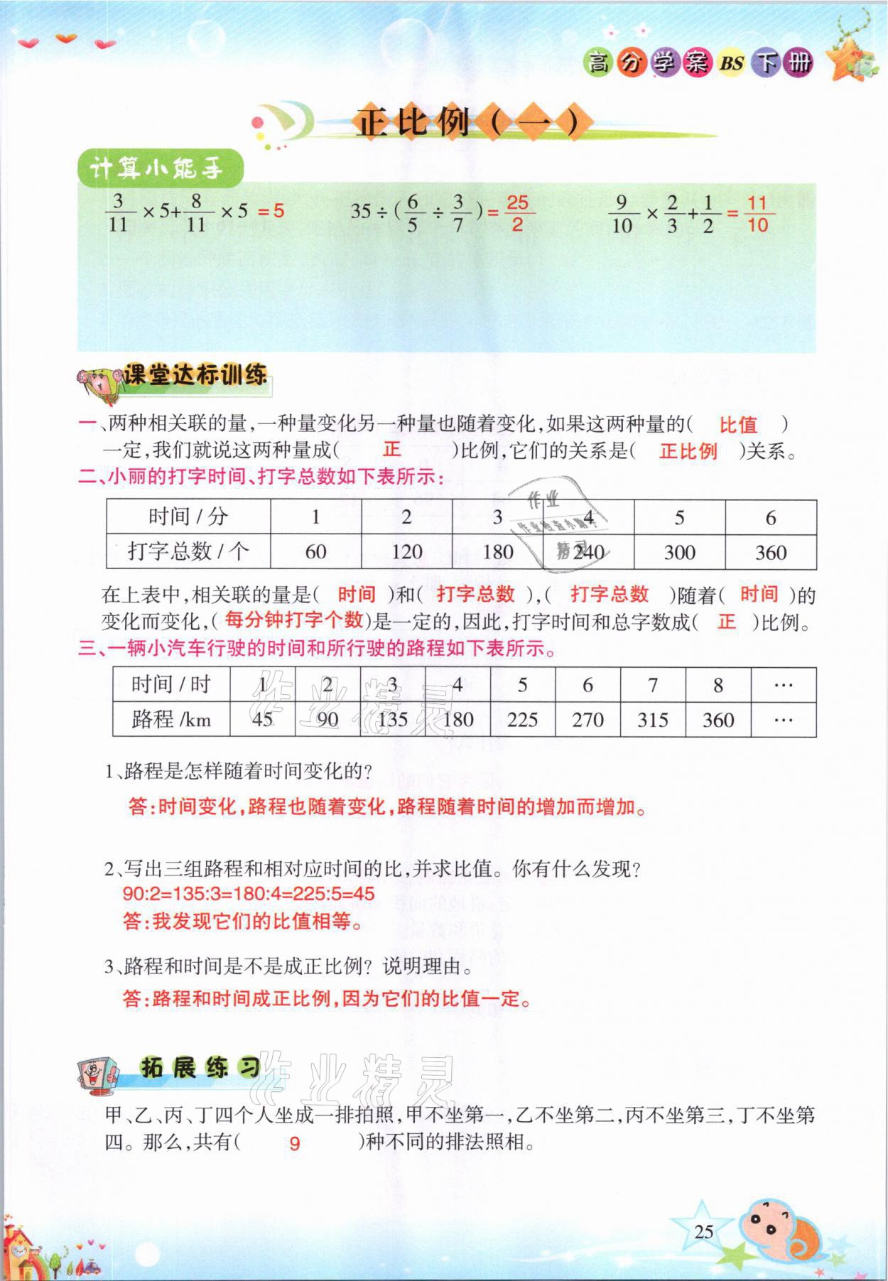 2021年高分学案赢在新课堂六年级数学下册北师大版