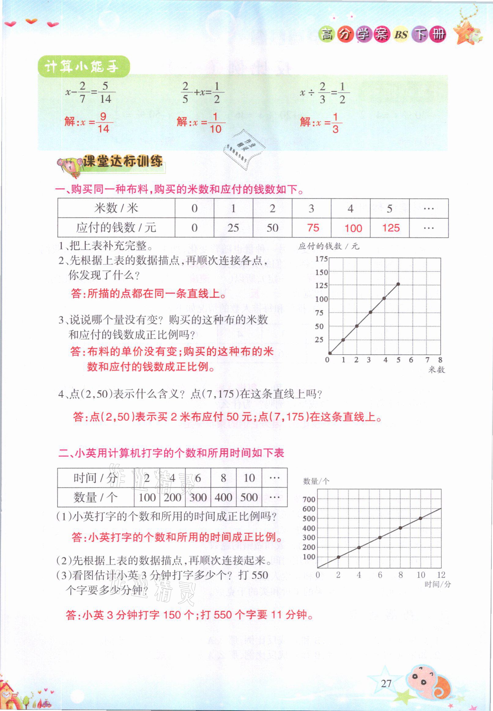 2021年高分学案赢在新课堂六年级数学下册北师大版