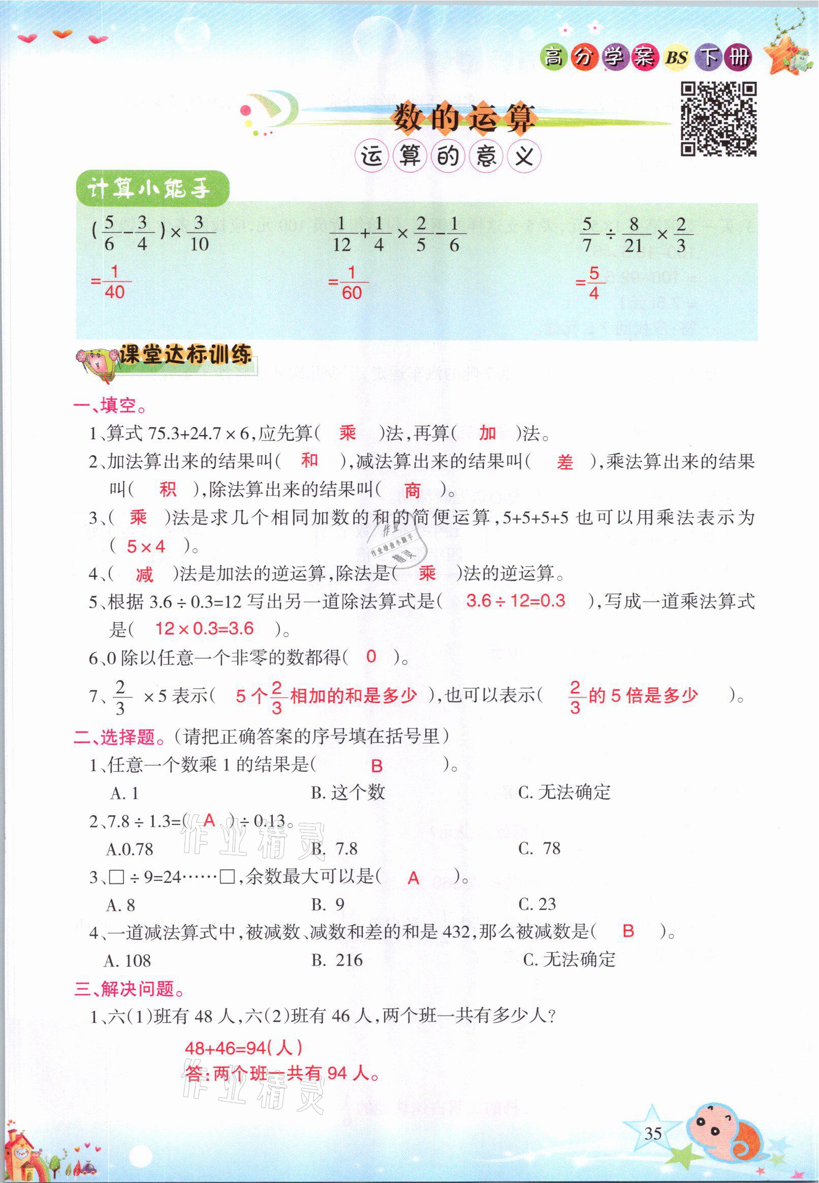 注:目前有些书本章节名称可能整理的还不是很完善,但都是按照顺序排列的,请同学们按照顺序仔细查找。练习册 2021年高分学案赢在新课堂六年级数学下册北师大版 答案主要是用来给同学们做完题方便对答案用的,请勿直接抄袭。