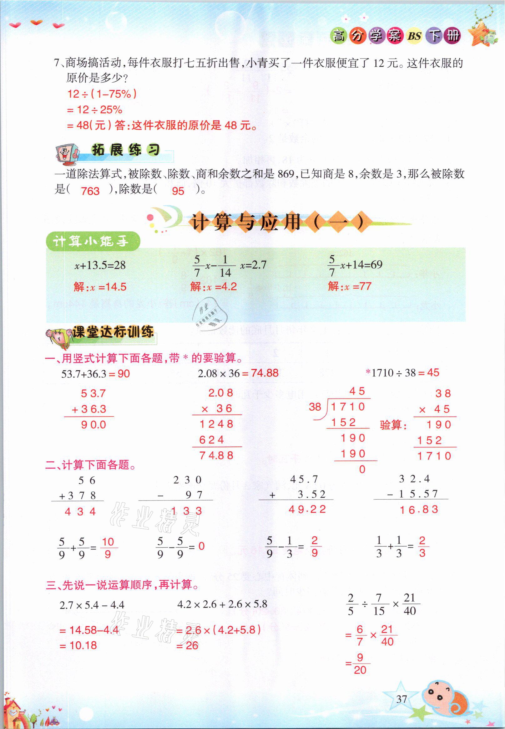 2021年高分学案赢在新课堂六年级数学下册北师大版