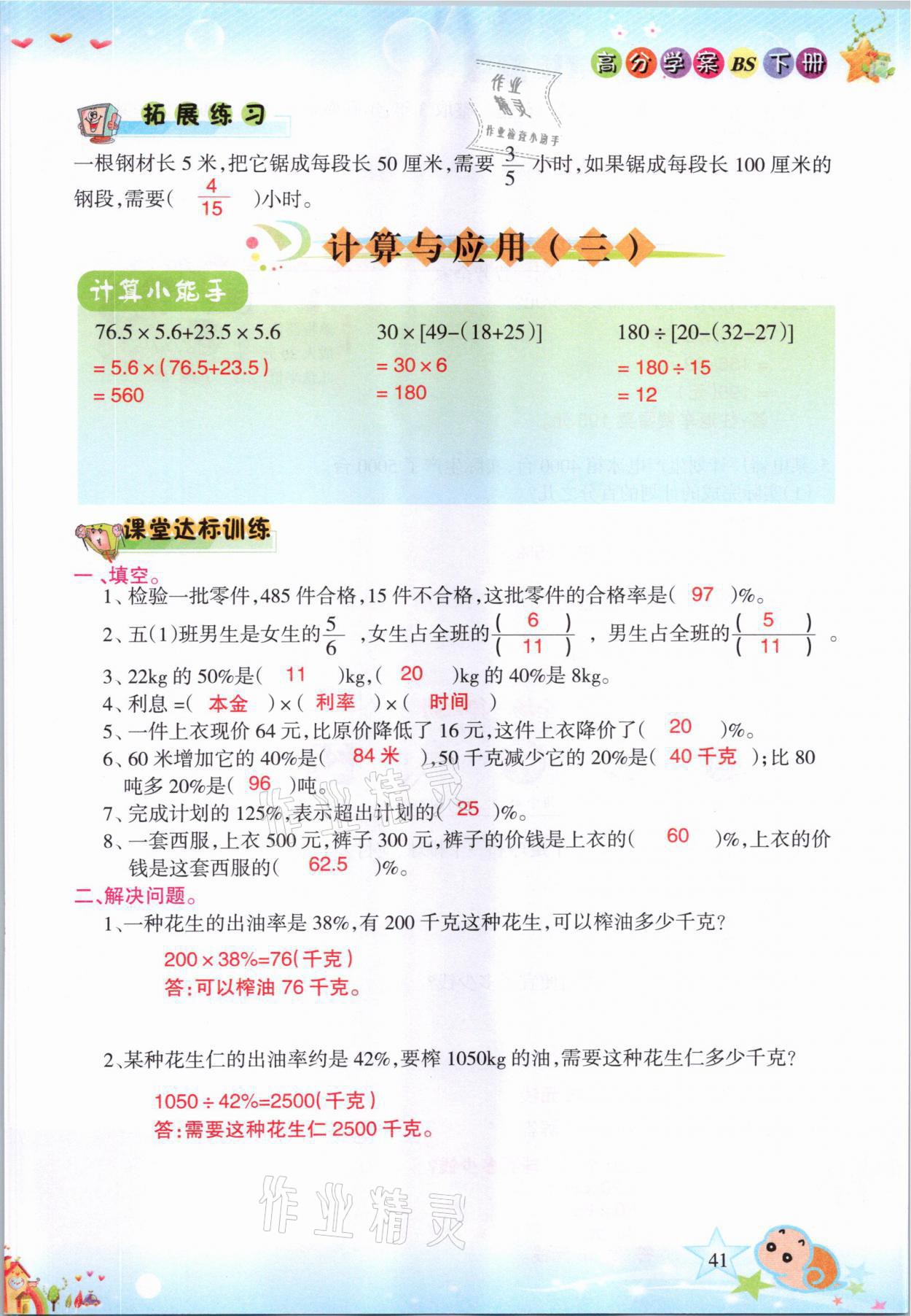 2021年高分学案赢在新课堂六年级数学下册北师大版