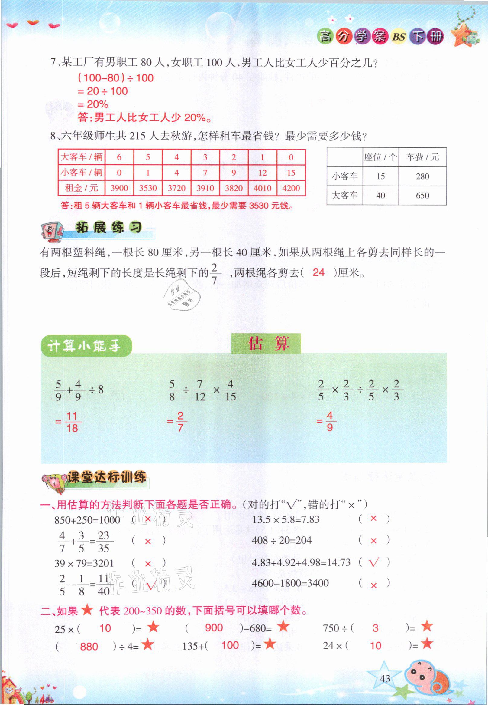 2021年高分学案赢在新课堂六年级数学下册北师大版