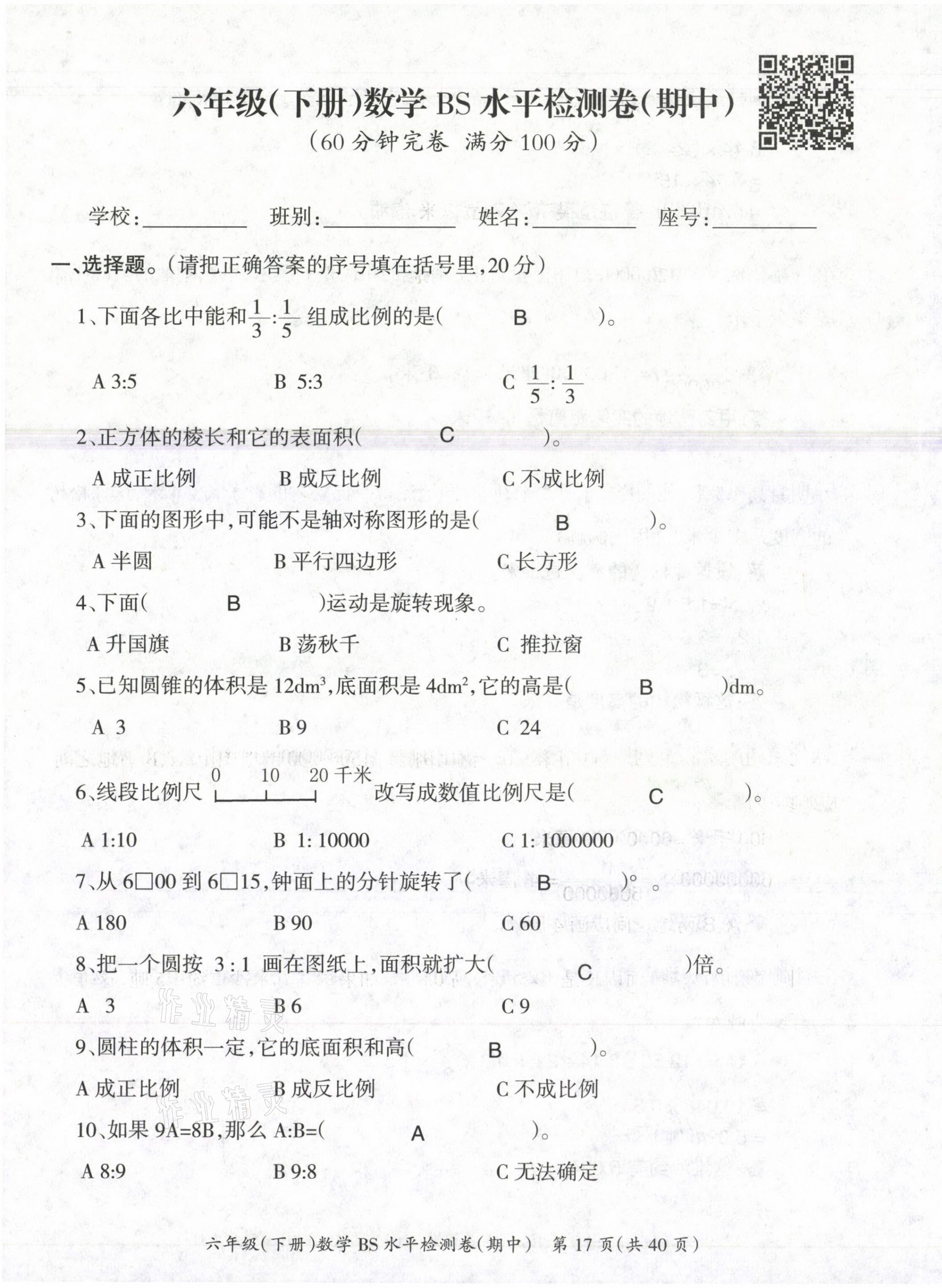 注:目前有些书本章节名称可能整理的还不是很完善,但都是按照顺序排列的,请同学们按照顺序仔细查找。练习册 2021年高分学案赢在新课堂六年级数学下册北师大版 答案主要是用来给同学们做完题方便对答案用的,请勿直接抄袭。