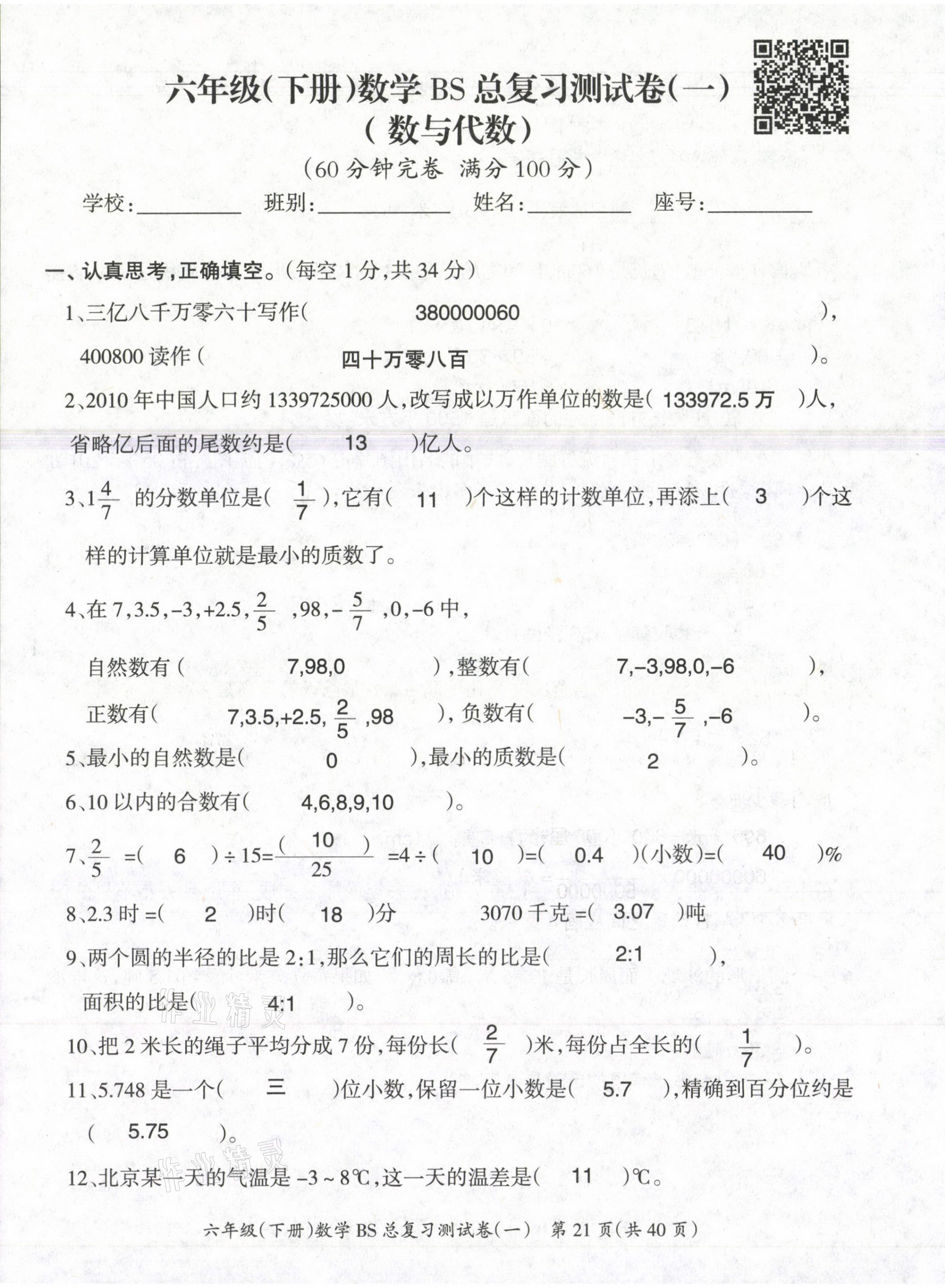 注:目前有些书本章节名称可能整理的还不是很完善,但都是按照顺序排列的,请同学们按照顺序仔细查找。练习册 2021年高分学案赢在新课堂六年级数学下册北师大版 答案主要是用来给同学们做完题方便对答案用的,请勿直接抄袭。