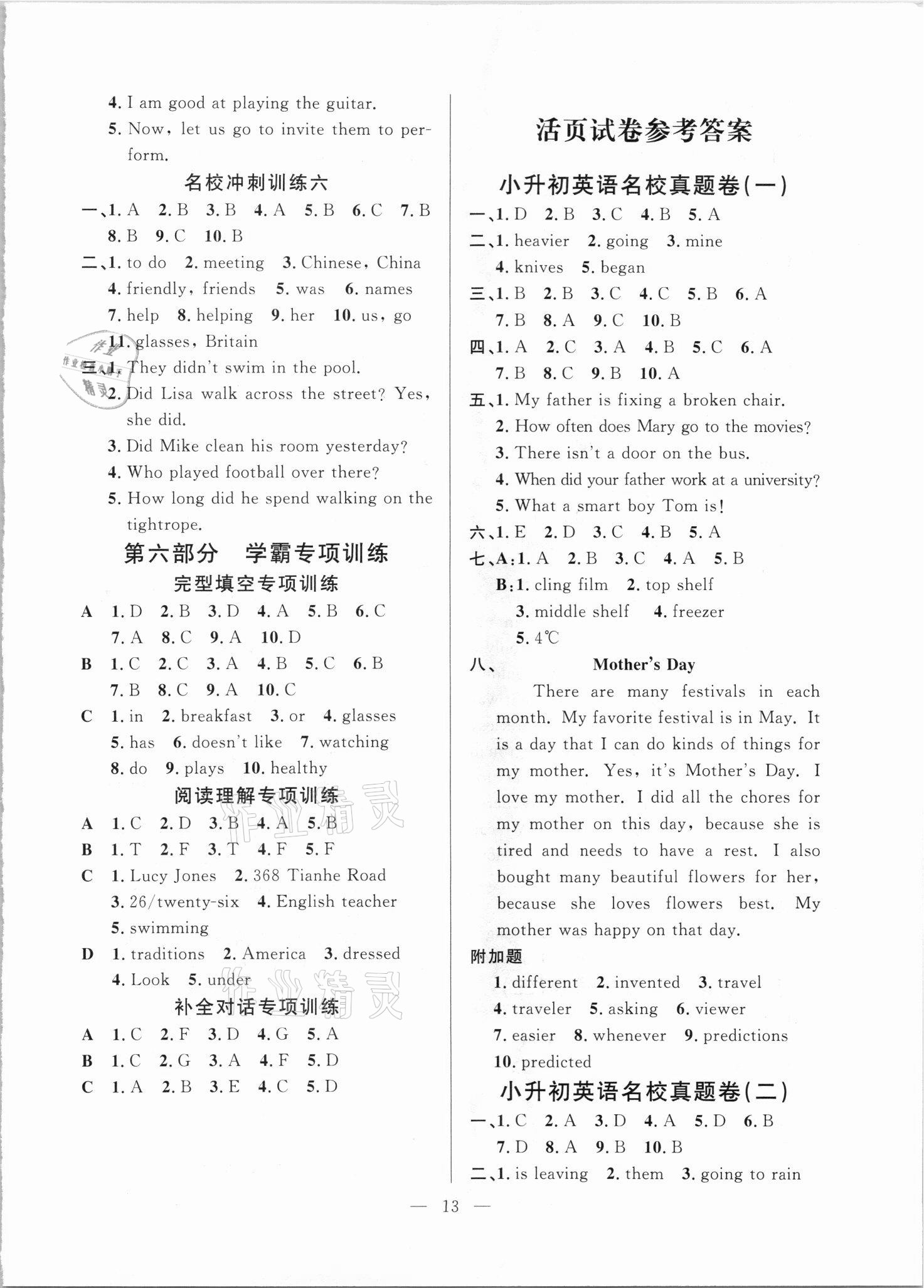 注:目前有些书本章节名称可能整理的还不是很完善,但都是按照顺序排列的,请同学们按照顺序仔细查找。练习册 2021年小学毕业升学总复习英语广州出版社 答案主要是用来给同学们做完题方便对答案用的,请勿直接抄袭。