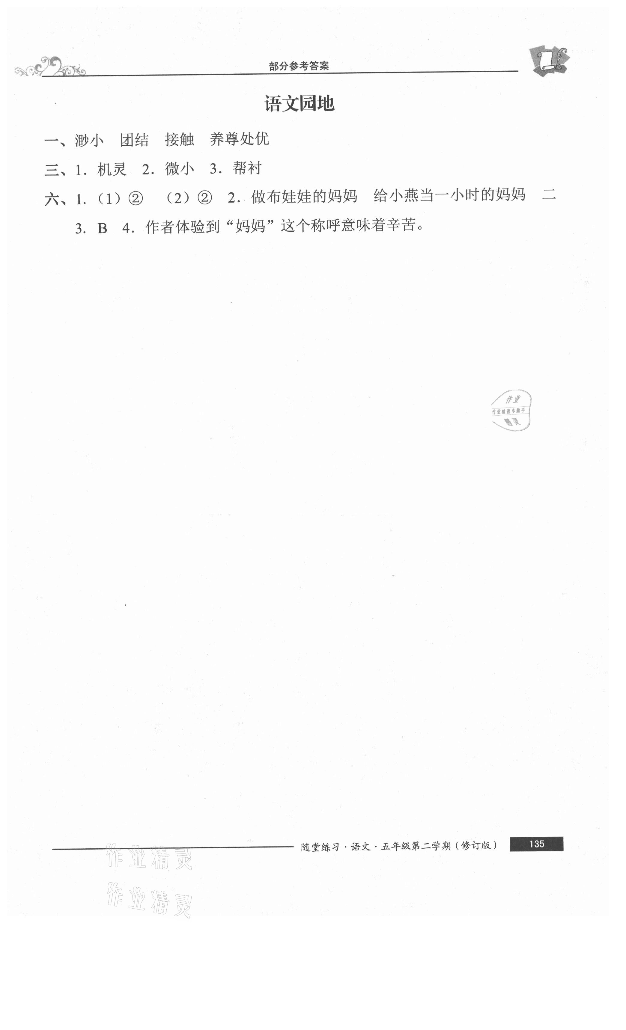 注:目前有些书本章节名称可能整理的还不是很完善,但都是按照顺序排列的,请同学们按照顺序仔细查找。练习册 2021年随堂练习与单元测试五年级语文下册人教版54制 答案主要是用来给同学们做完题方便对答案用的,请勿直接抄袭。