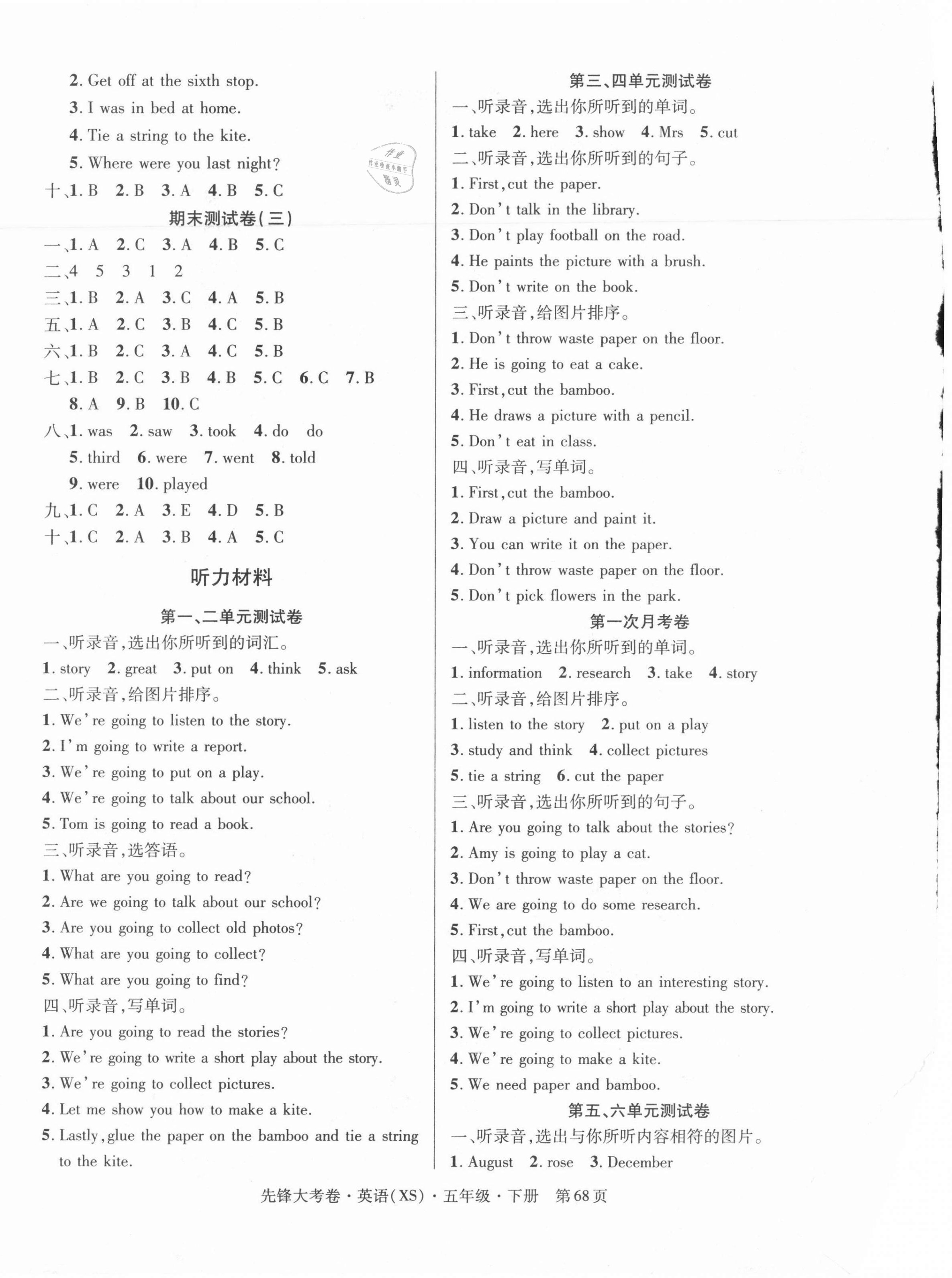 《2021年单元加期末复习先锋大考卷五年级英语下册湘少版》