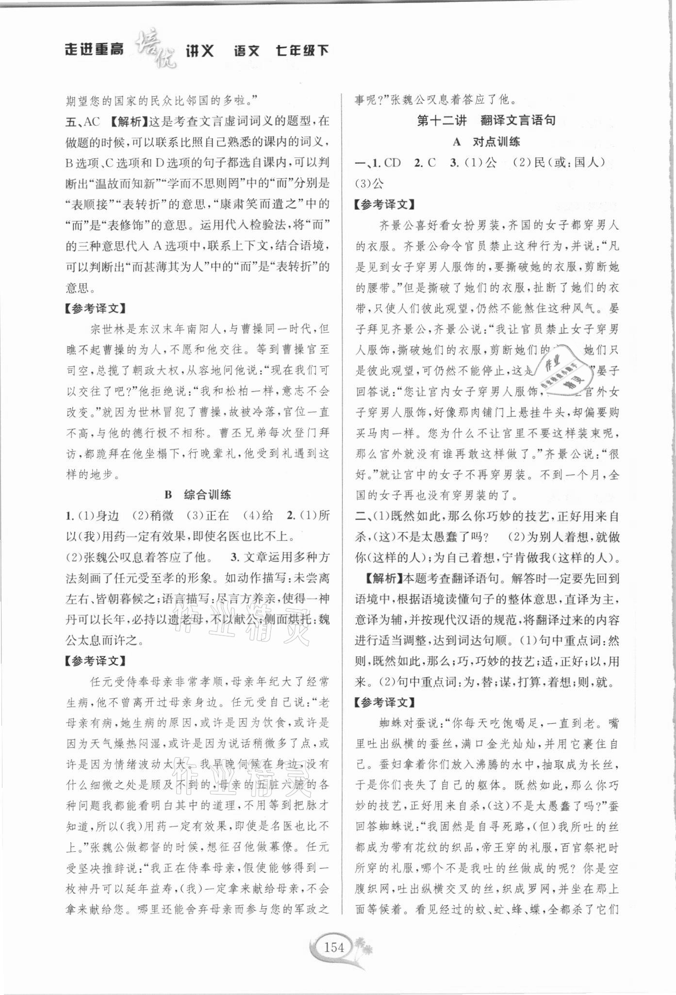 2021年走进重高培优讲义七年级语文下册人教版双色第二版