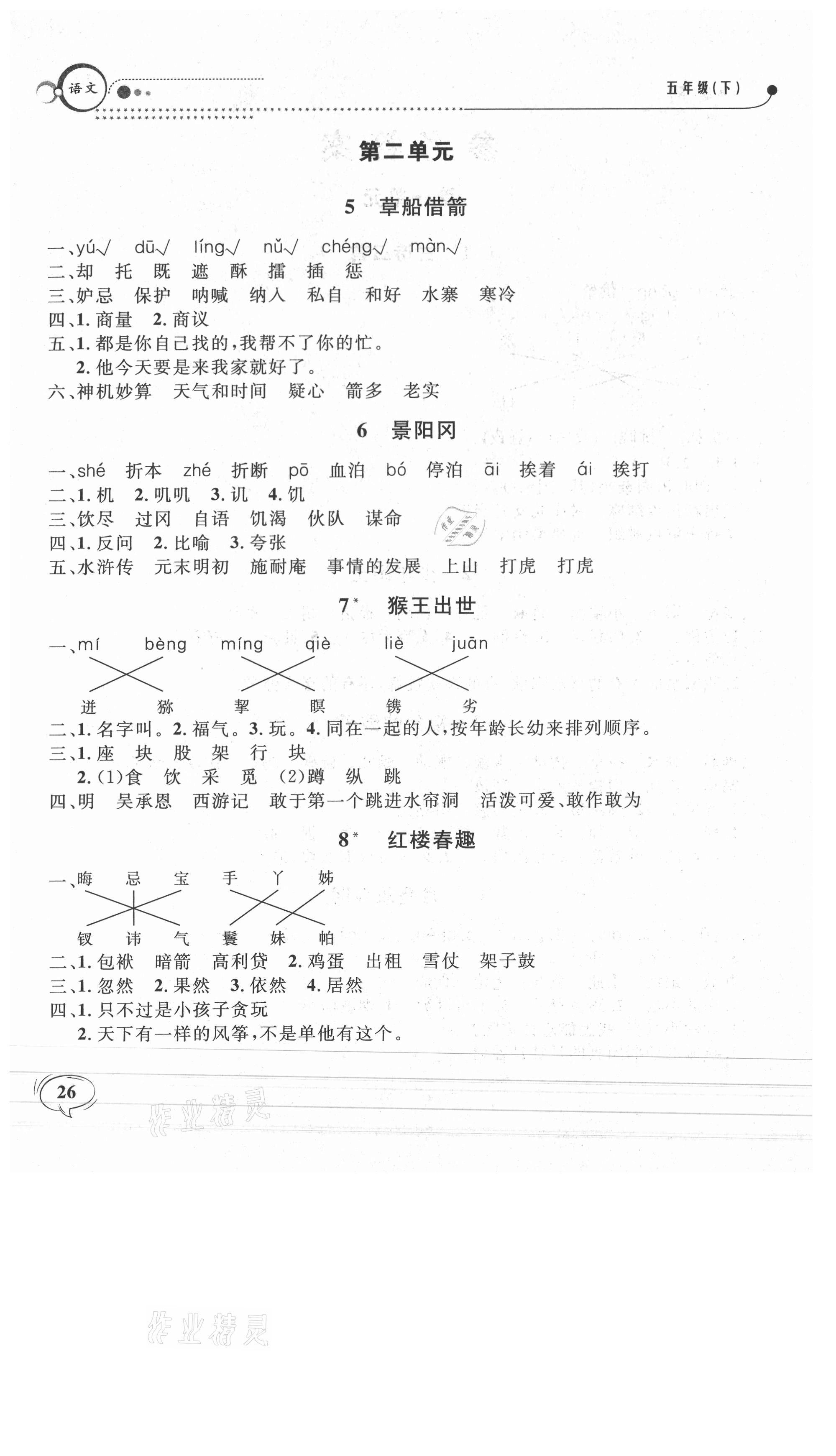 注:目前有些书本章节名称可能整理的还不是很完善,但都是按照顺序排列的,请同学们按照顺序仔细查找。练习册 2021年钟书金牌金试卷五年级语文下册人教版 答案主要是用来给同学们做完题方便对答案用的,请勿直接抄袭。