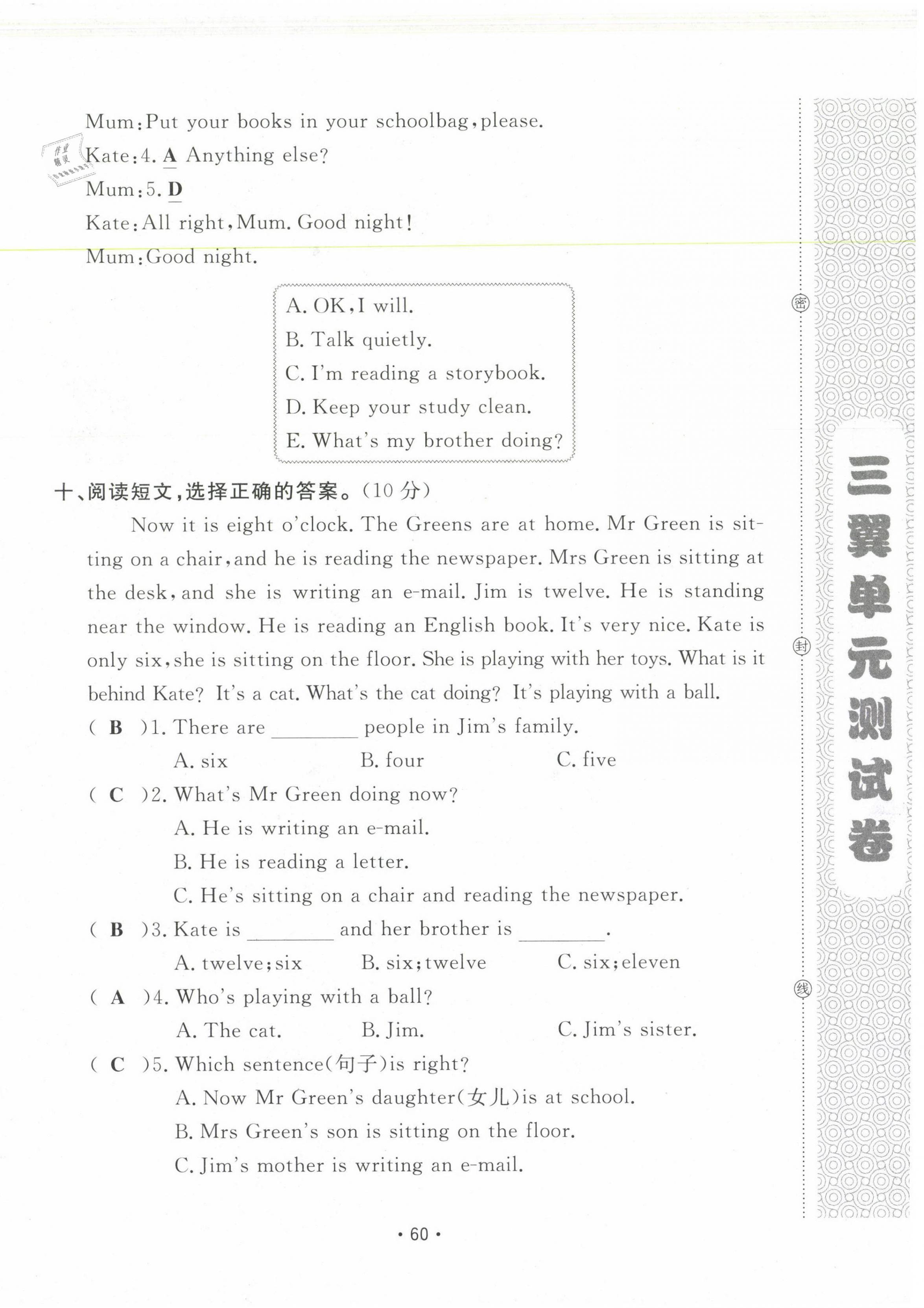 《2021年三翼单元测试卷黄冈100分五年级英语下册人教版》