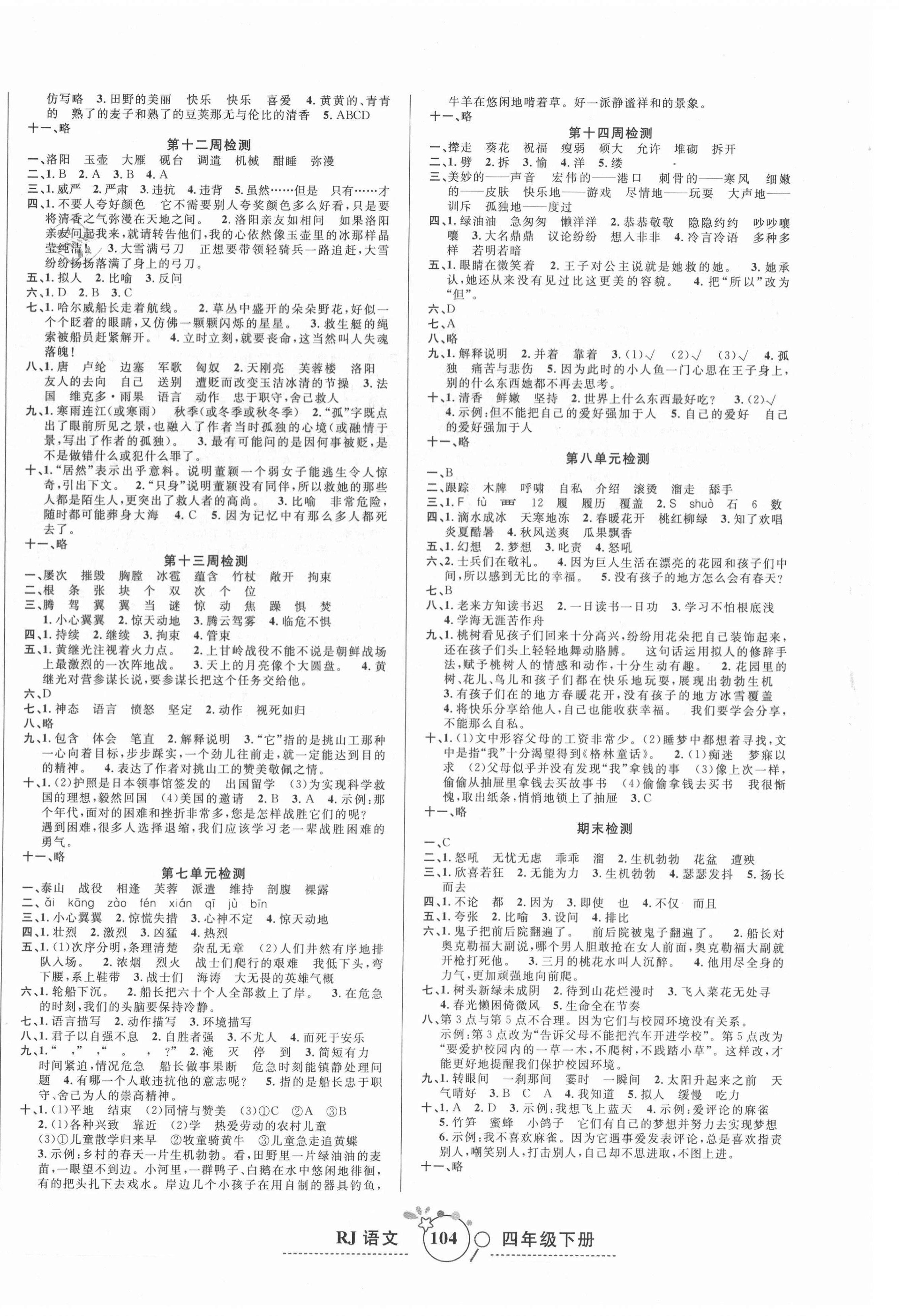2021年开心一卷通全优大考卷四年级语文下册人教版