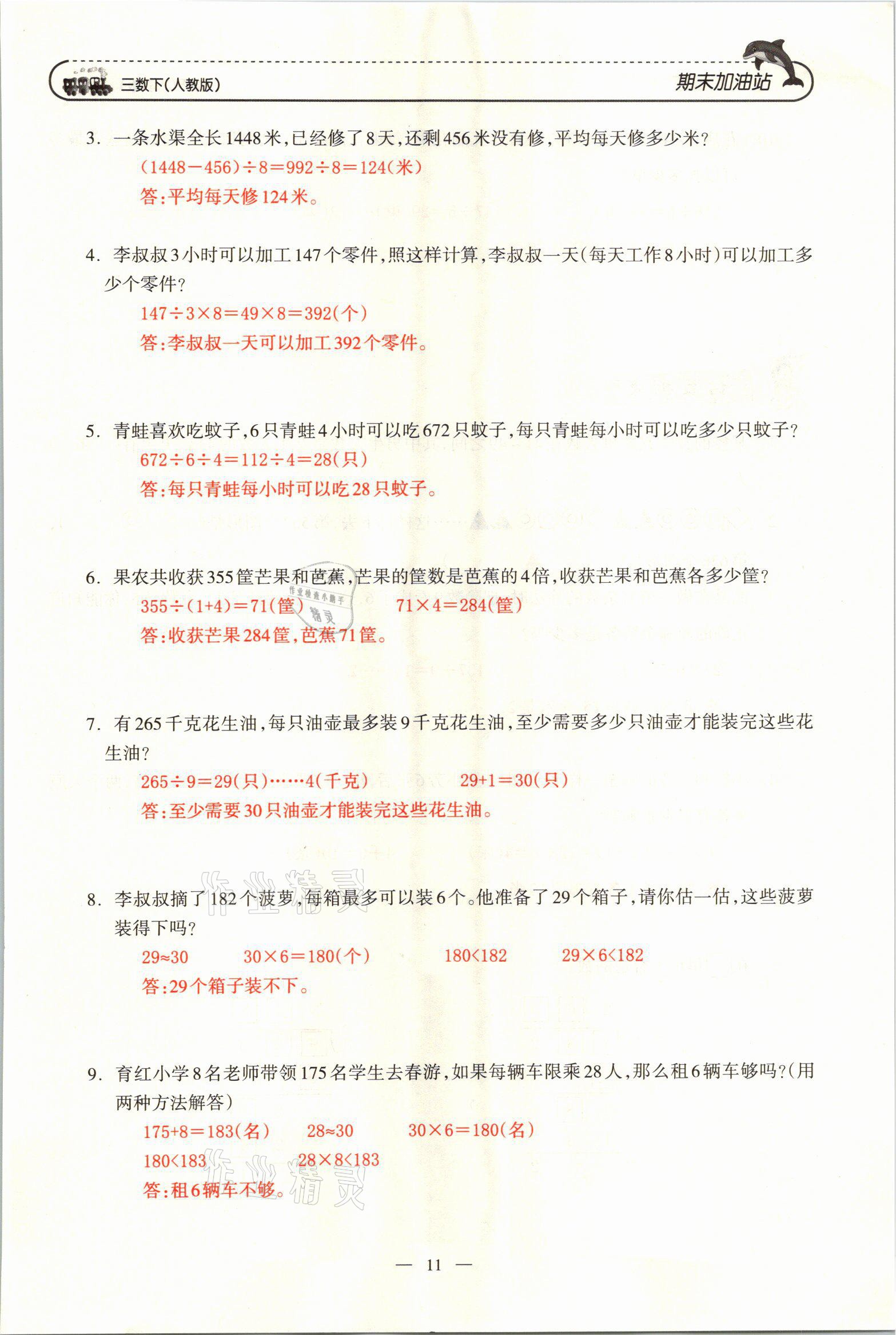 注:目前有些书本章节名称可能整理的还不是很完善,但都是按照顺序排列的,请同学们按照顺序仔细查找。练习册 2021年小学期末加油站三年级数学下册人教版 答案主要是用来给同学们做完题方便对答案用的,请勿直接抄袭。