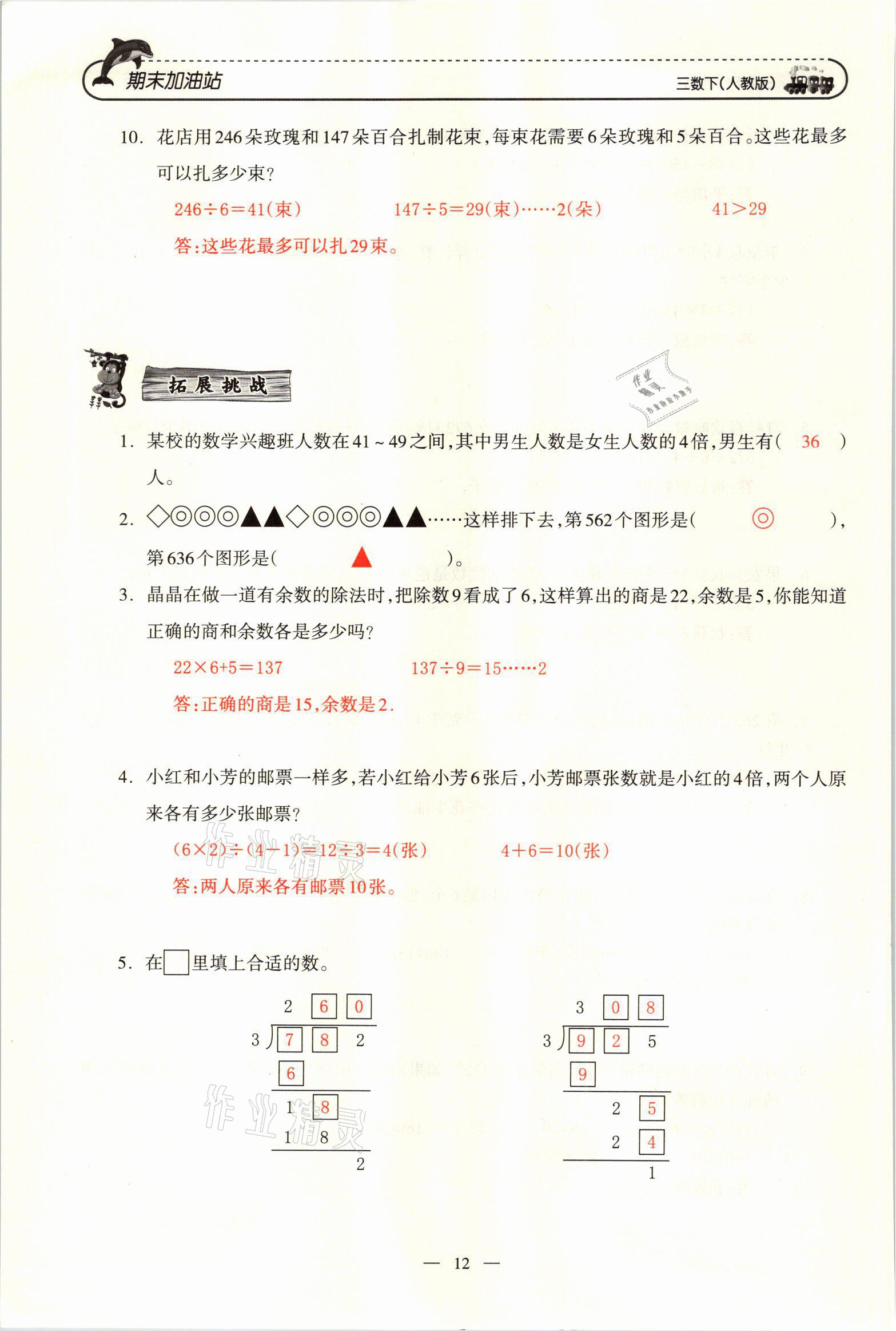 注:目前有些书本章节名称可能整理的还不是很完善,但都是按照顺序排列的,请同学们按照顺序仔细查找。练习册 2021年小学期末加油站三年级数学下册人教版 答案主要是用来给同学们做完题方便对答案用的,请勿直接抄袭。