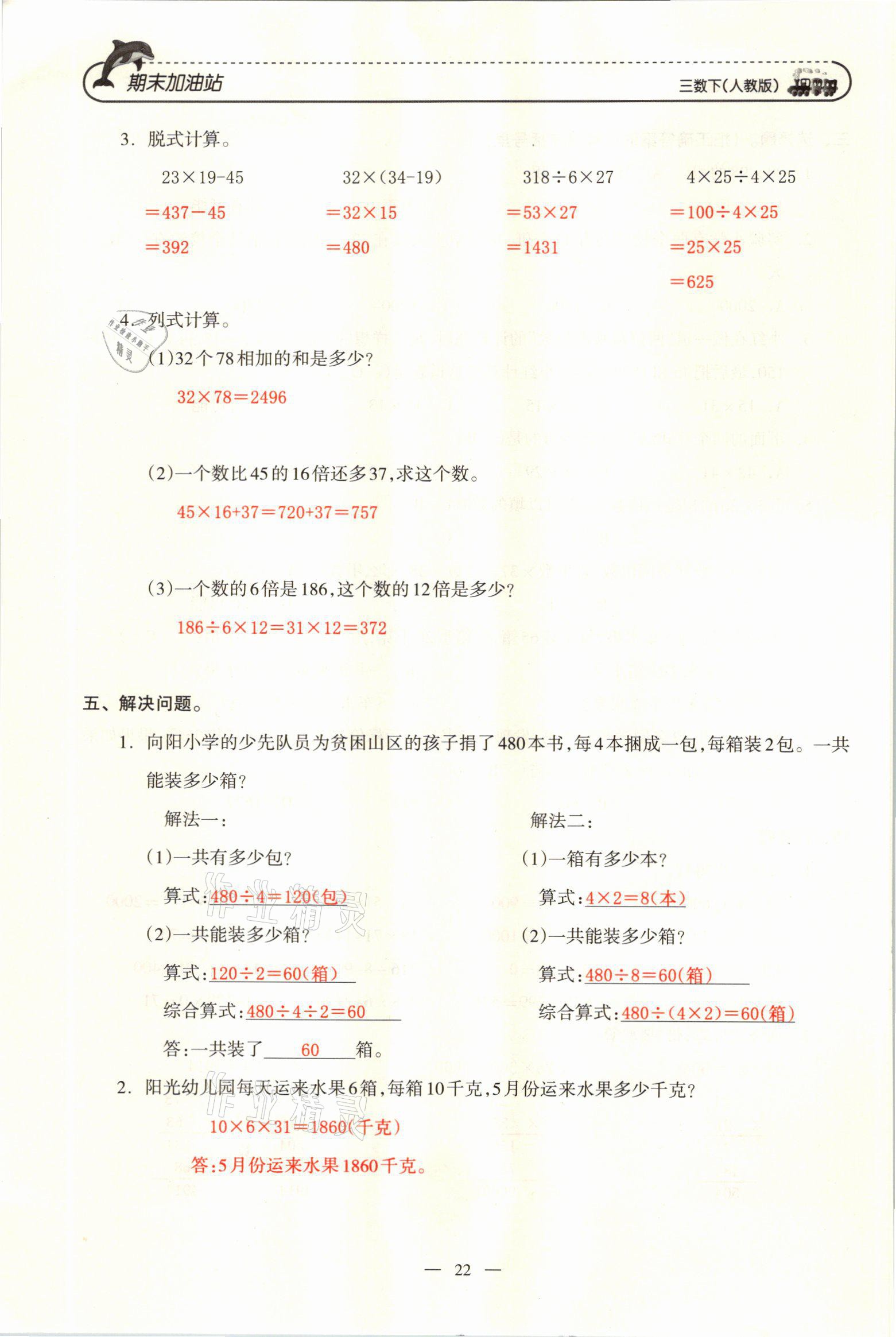 注:目前有些书本章节名称可能整理的还不是很完善,但都是按照顺序排列的,请同学们按照顺序仔细查找。练习册 2021年小学期末加油站三年级数学下册人教版 答案主要是用来给同学们做完题方便对答案用的,请勿直接抄袭。