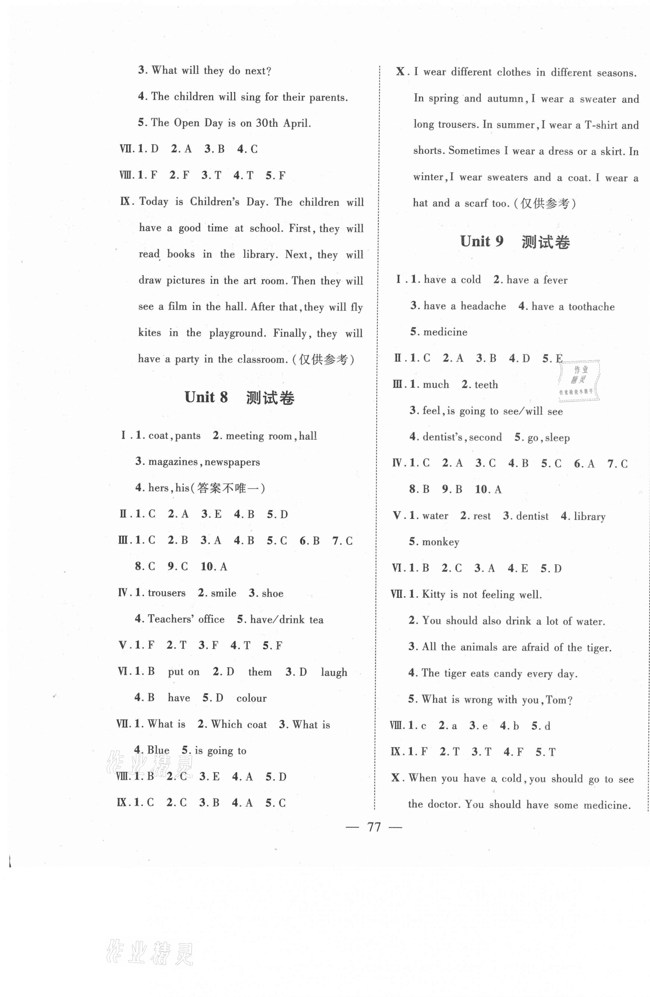 注:目前有些书本章节名称可能整理的还不是很完善,但都是按照顺序排列的,请同学们按照顺序仔细查找。练习册 2021年全能测试卷五年级英语下册人教新起点辽宁少年儿童出版社 答案主要是用来给同学们做完题方便对答案用的,请勿直接抄袭。