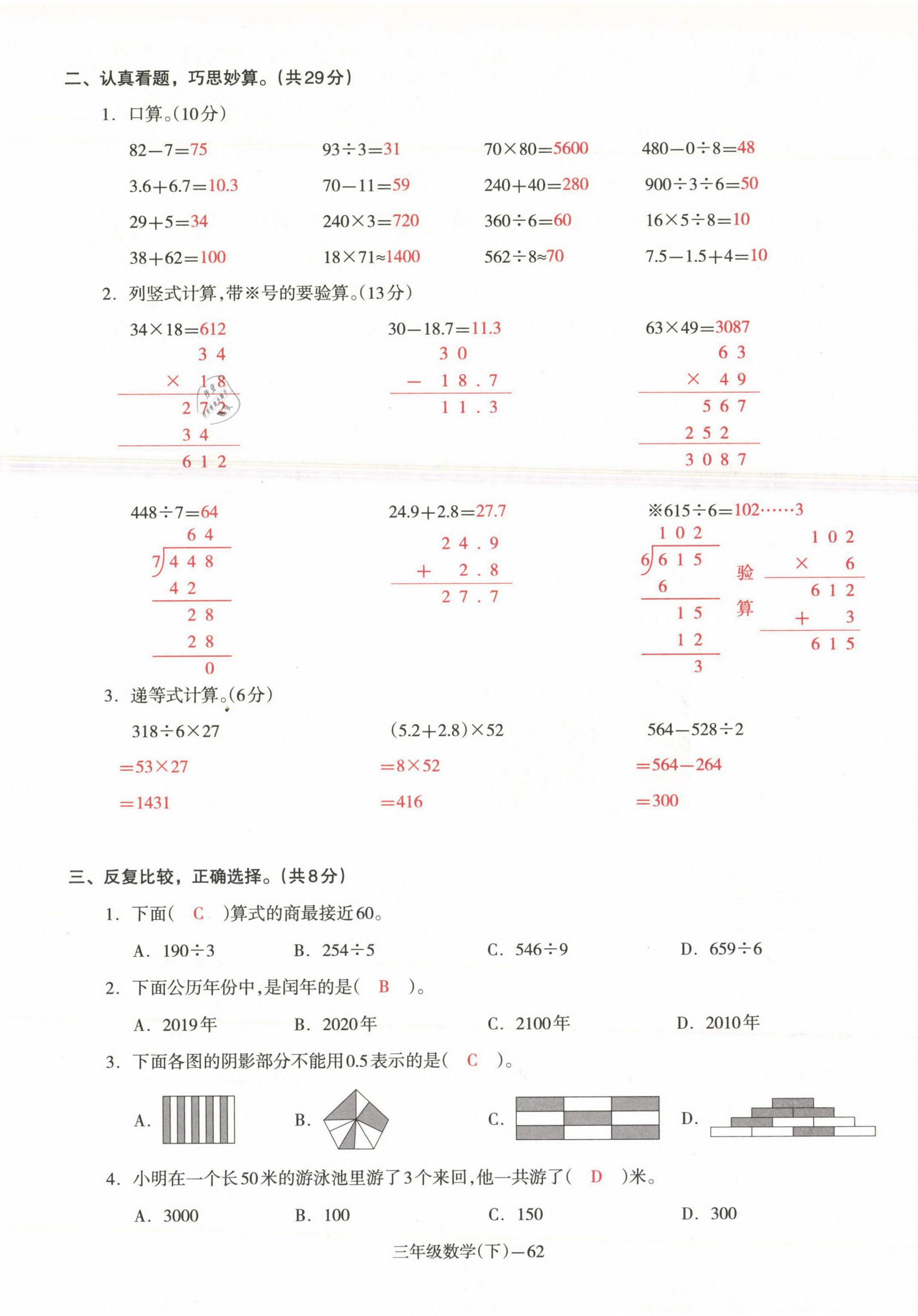 2021年小学期末加油站三年级数学下册人教版