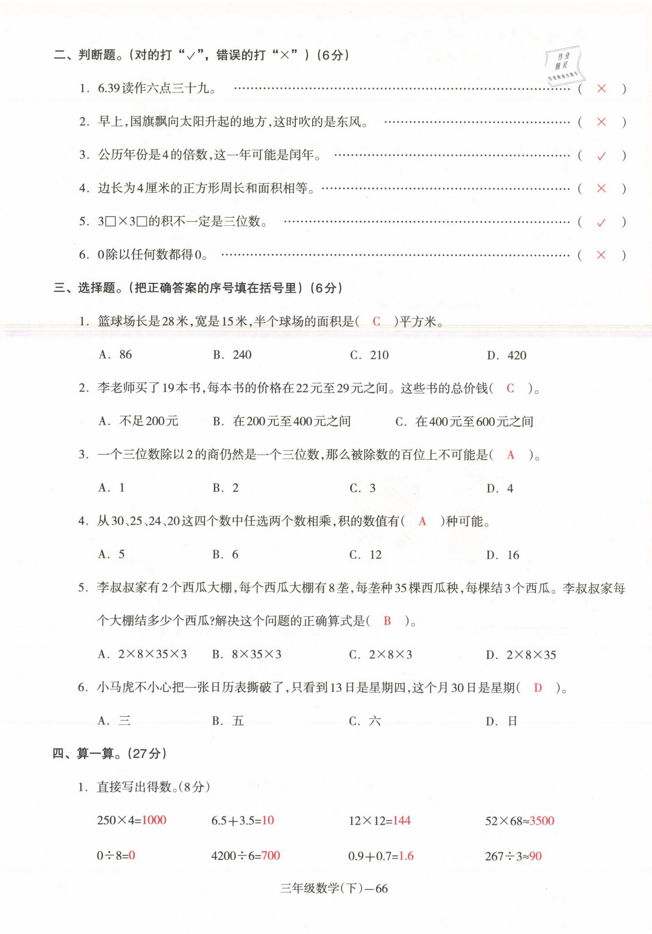 注:目前有些书本章节名称可能整理的还不是很完善,但都是按照顺序排列的,请同学们按照顺序仔细查找。练习册 2021年小学期末加油站三年级数学下册人教版 答案主要是用来给同学们做完题方便对答案用的,请勿直接抄袭。