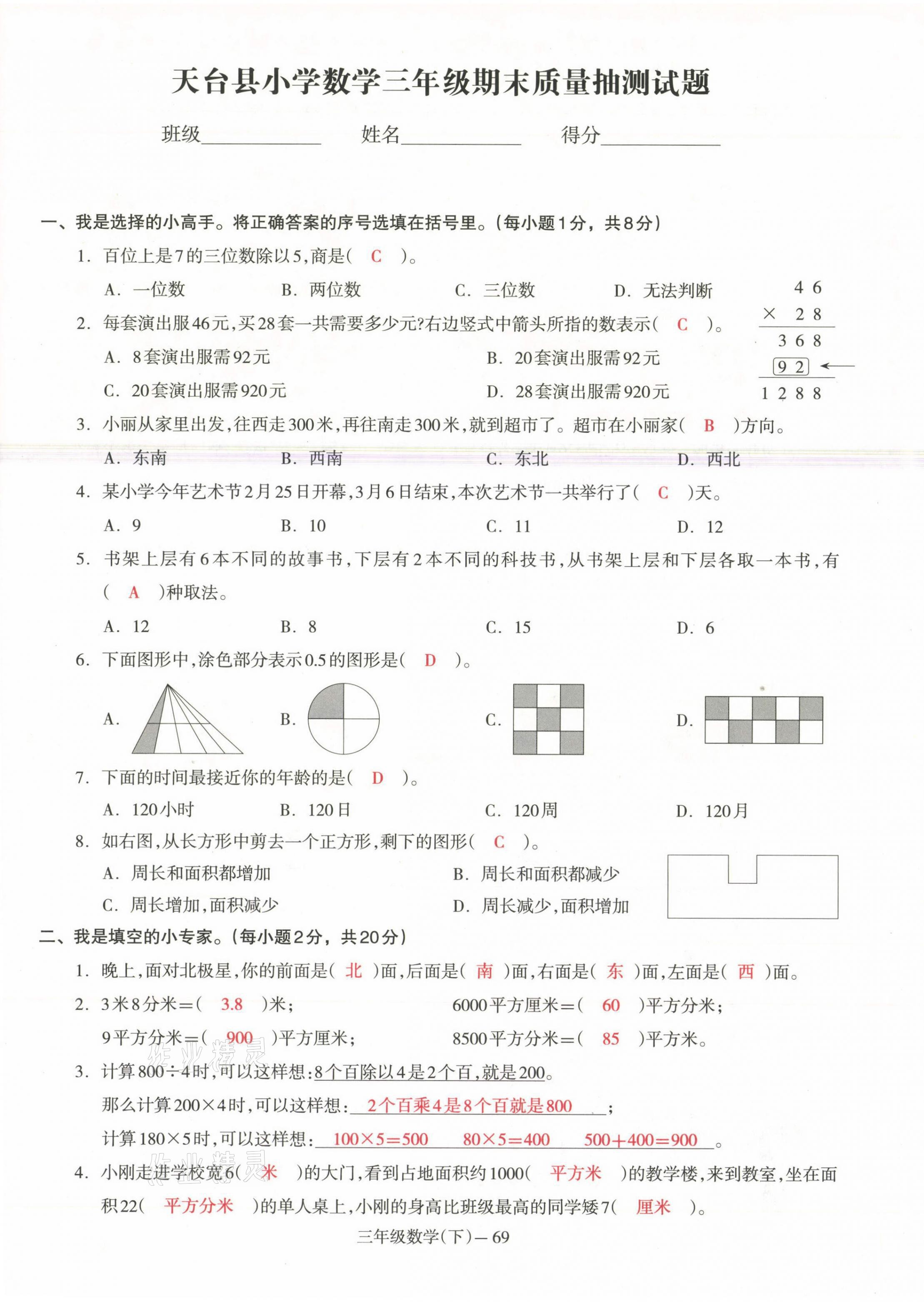 注:目前有些书本章节名称可能整理的还不是很完善,但都是按照顺序排列的,请同学们按照顺序仔细查找。练习册 2021年小学期末加油站三年级数学下册人教版 答案主要是用来给同学们做完题方便对答案用的,请勿直接抄袭。