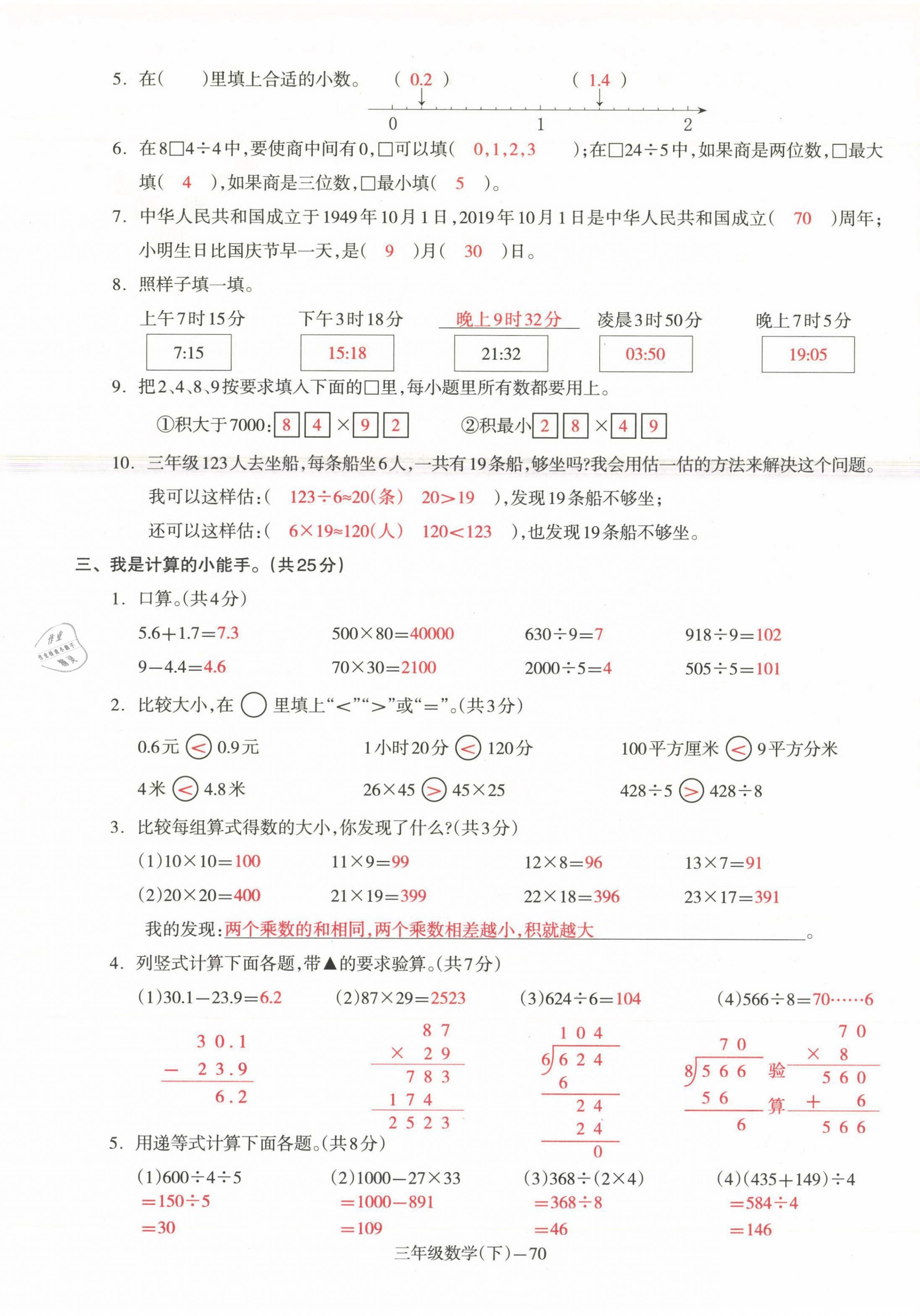 注:目前有些书本章节名称可能整理的还不是很完善,但都是按照顺序排列的,请同学们按照顺序仔细查找。练习册 2021年小学期末加油站三年级数学下册人教版 答案主要是用来给同学们做完题方便对答案用的,请勿直接抄袭。