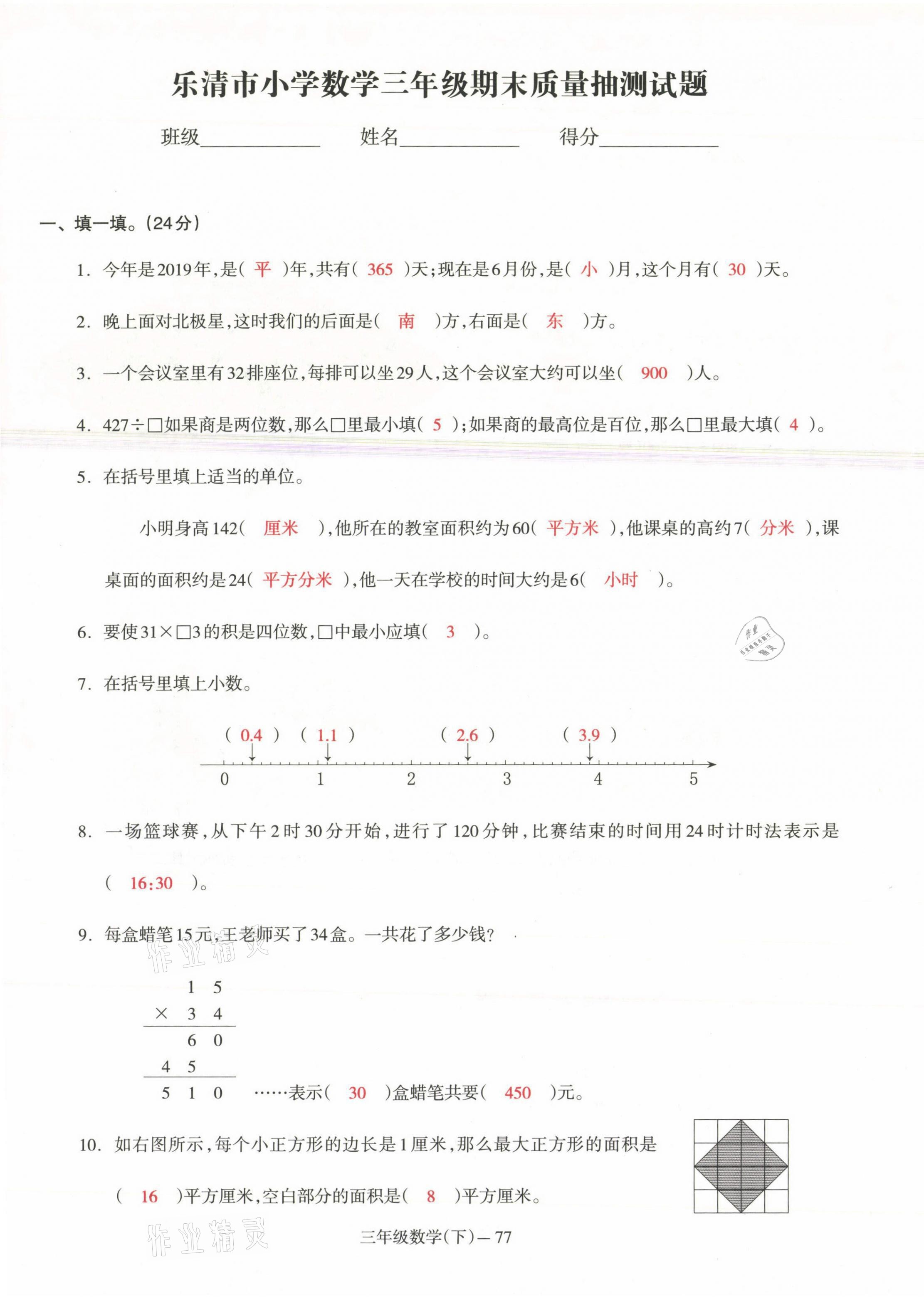 注:目前有些书本章节名称可能整理的还不是很完善,但都是按照顺序排列的,请同学们按照顺序仔细查找。练习册 2021年小学期末加油站三年级数学下册人教版 答案主要是用来给同学们做完题方便对答案用的,请勿直接抄袭。