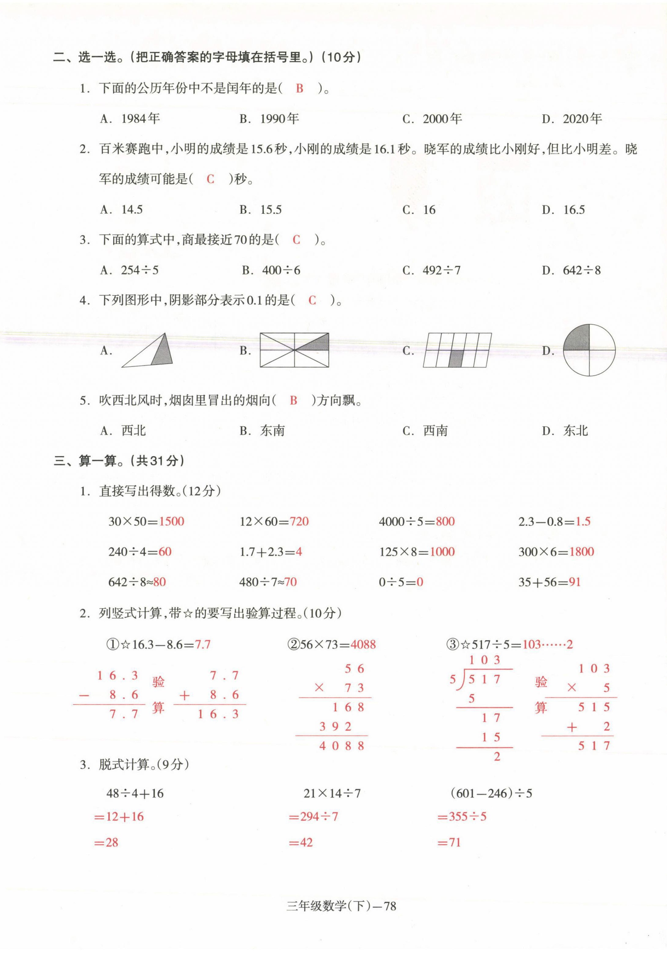 注:目前有些书本章节名称可能整理的还不是很完善,但都是按照顺序排列的,请同学们按照顺序仔细查找。练习册 2021年小学期末加油站三年级数学下册人教版 答案主要是用来给同学们做完题方便对答案用的,请勿直接抄袭。