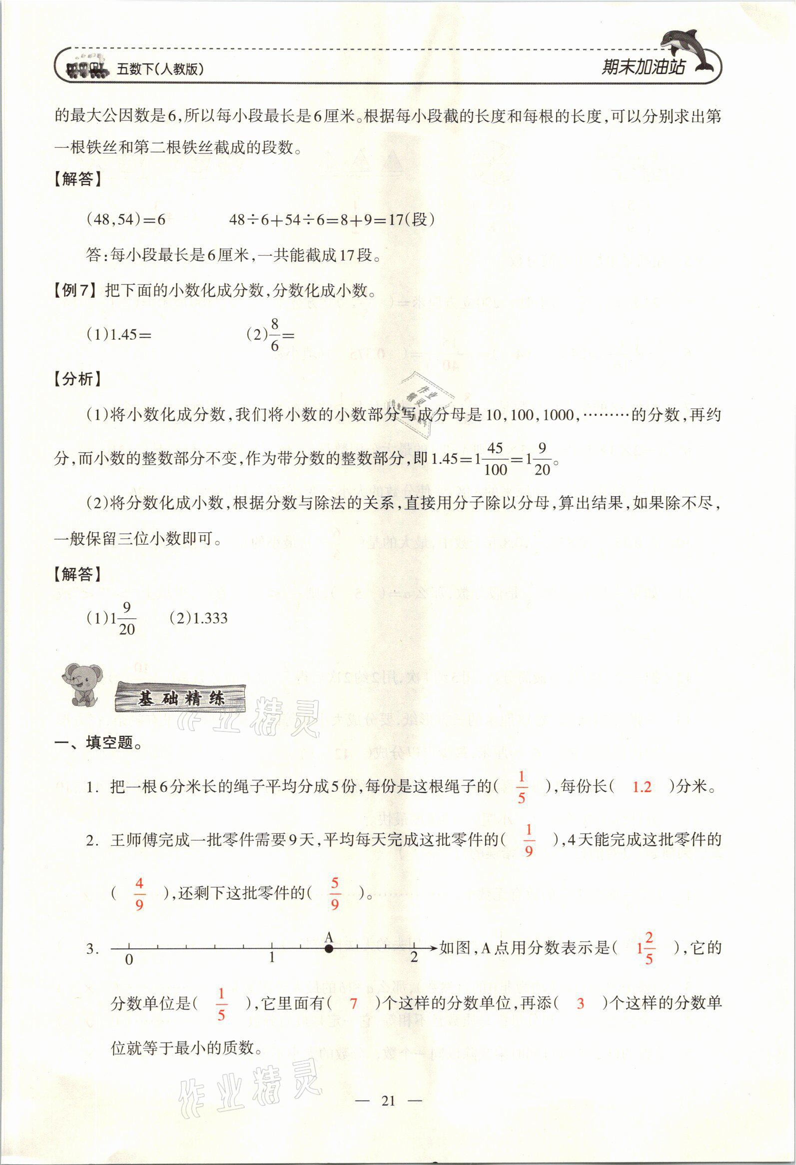 注:目前有些书本章节名称可能整理的还不是很完善,但都是按照顺序排列的,请同学们按照顺序仔细查找。练习册 2021年小学期末加油站五年级数学下册人教版 答案主要是用来给同学们做完题方便对答案用的,请勿直接抄袭。