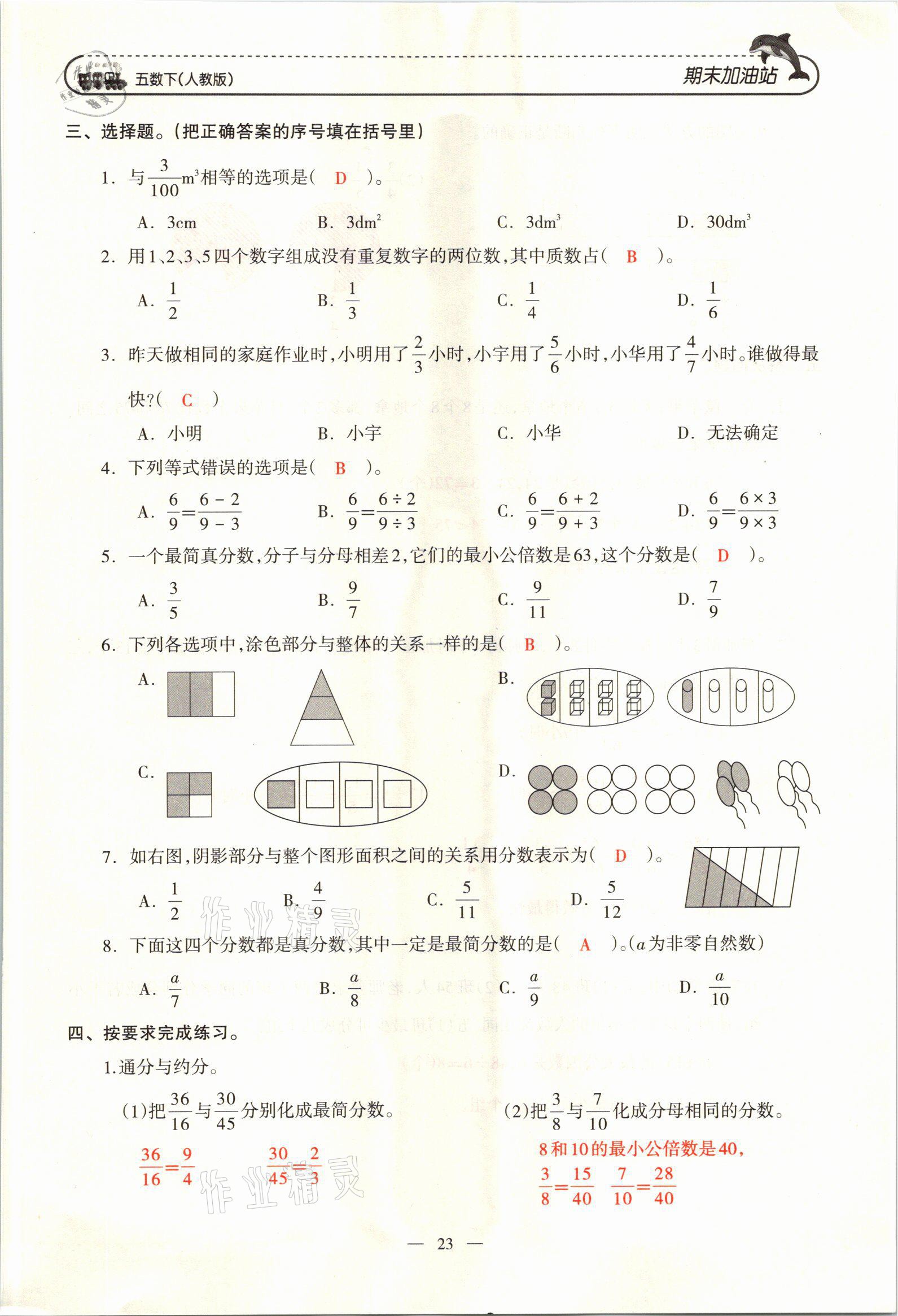 注:目前有些书本章节名称可能整理的还不是很完善,但都是按照顺序排列的,请同学们按照顺序仔细查找。练习册 2021年小学期末加油站五年级数学下册人教版 答案主要是用来给同学们做完题方便对答案用的,请勿直接抄袭。