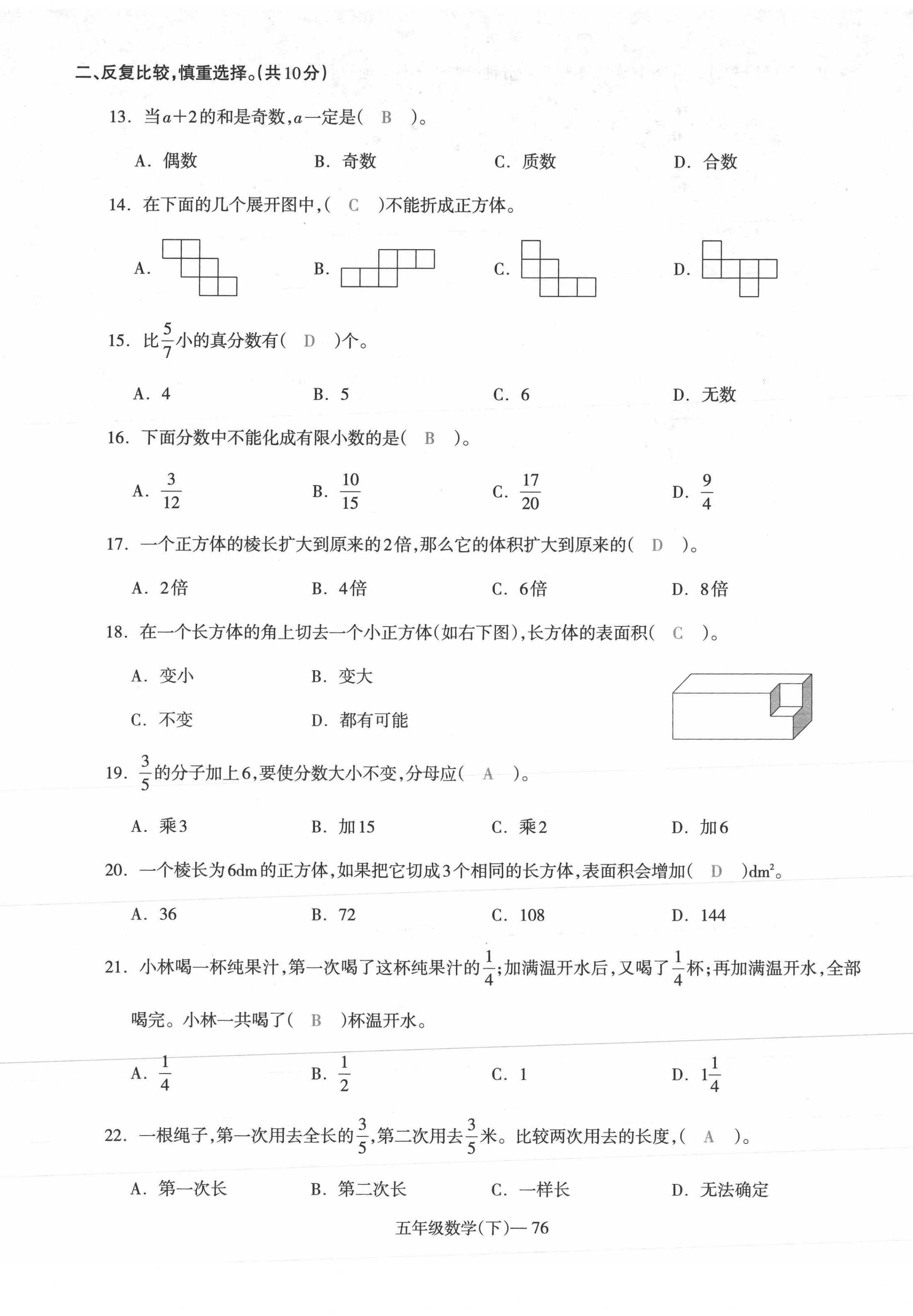 注:目前有些书本章节名称可能整理的还不是很完善,但都是按照顺序排列的,请同学们按照顺序仔细查找。练习册 2021年小学期末加油站五年级数学下册人教版 答案主要是用来给同学们做完题方便对答案用的,请勿直接抄袭。