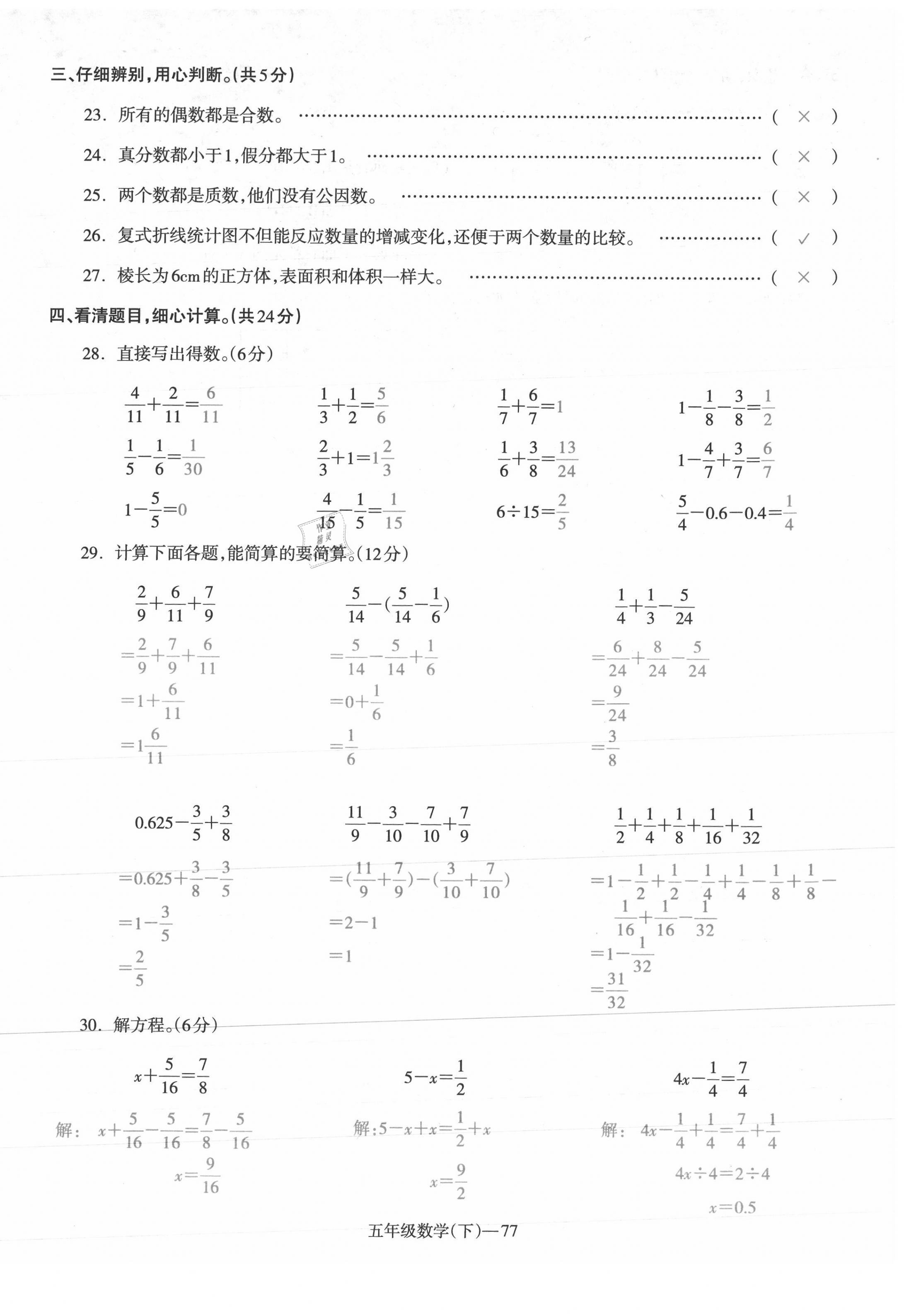 注:目前有些书本章节名称可能整理的还不是很完善,但都是按照顺序排列的,请同学们按照顺序仔细查找。练习册 2021年小学期末加油站五年级数学下册人教版 答案主要是用来给同学们做完题方便对答案用的,请勿直接抄袭。