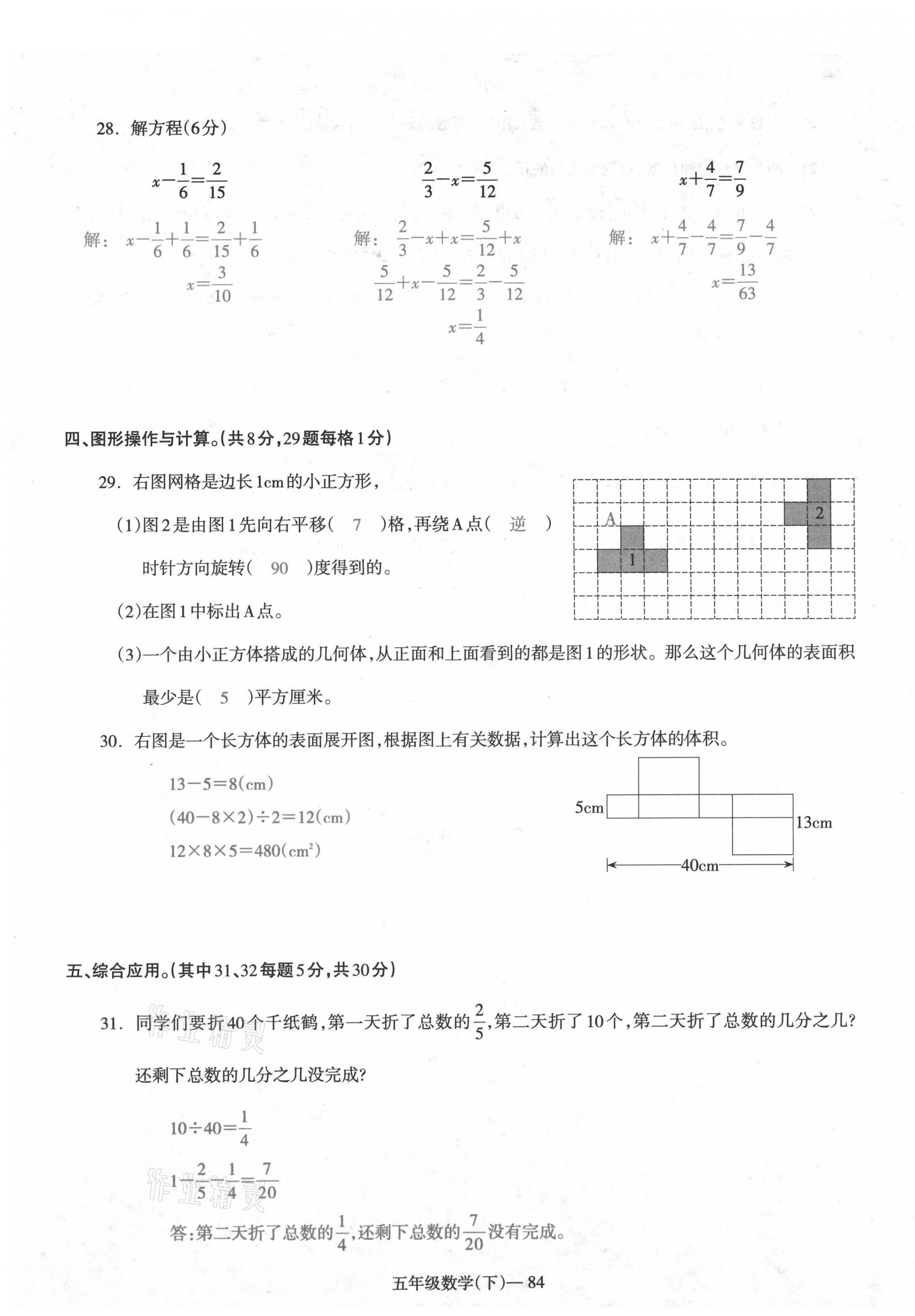 注:目前有些书本章节名称可能整理的还不是很完善,但都是按照顺序排列的,请同学们按照顺序仔细查找。练习册 2021年小学期末加油站五年级数学下册人教版 答案主要是用来给同学们做完题方便对答案用的,请勿直接抄袭。