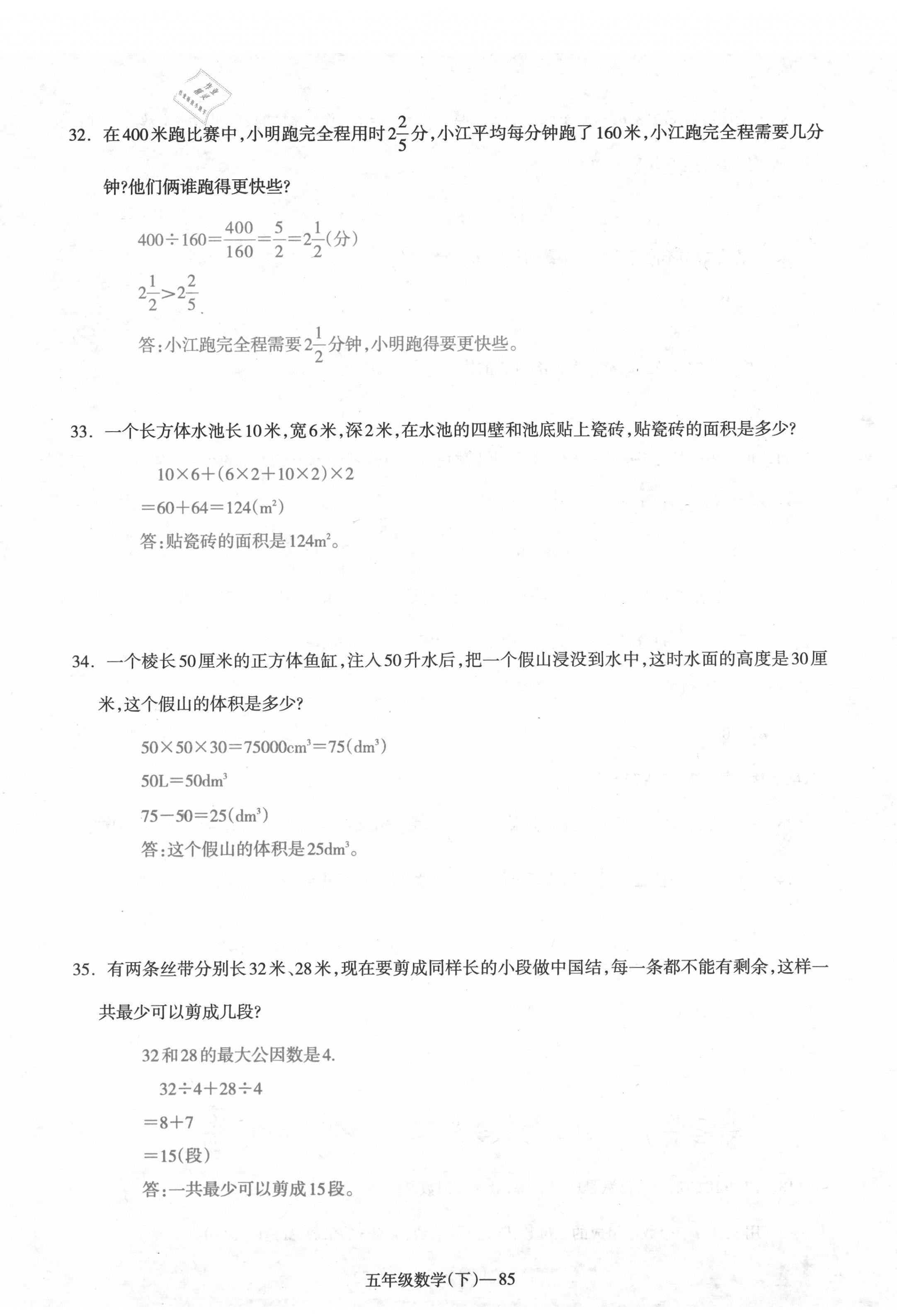 注:目前有些书本章节名称可能整理的还不是很完善,但都是按照顺序排列的,请同学们按照顺序仔细查找。练习册 2021年小学期末加油站五年级数学下册人教版 答案主要是用来给同学们做完题方便对答案用的,请勿直接抄袭。