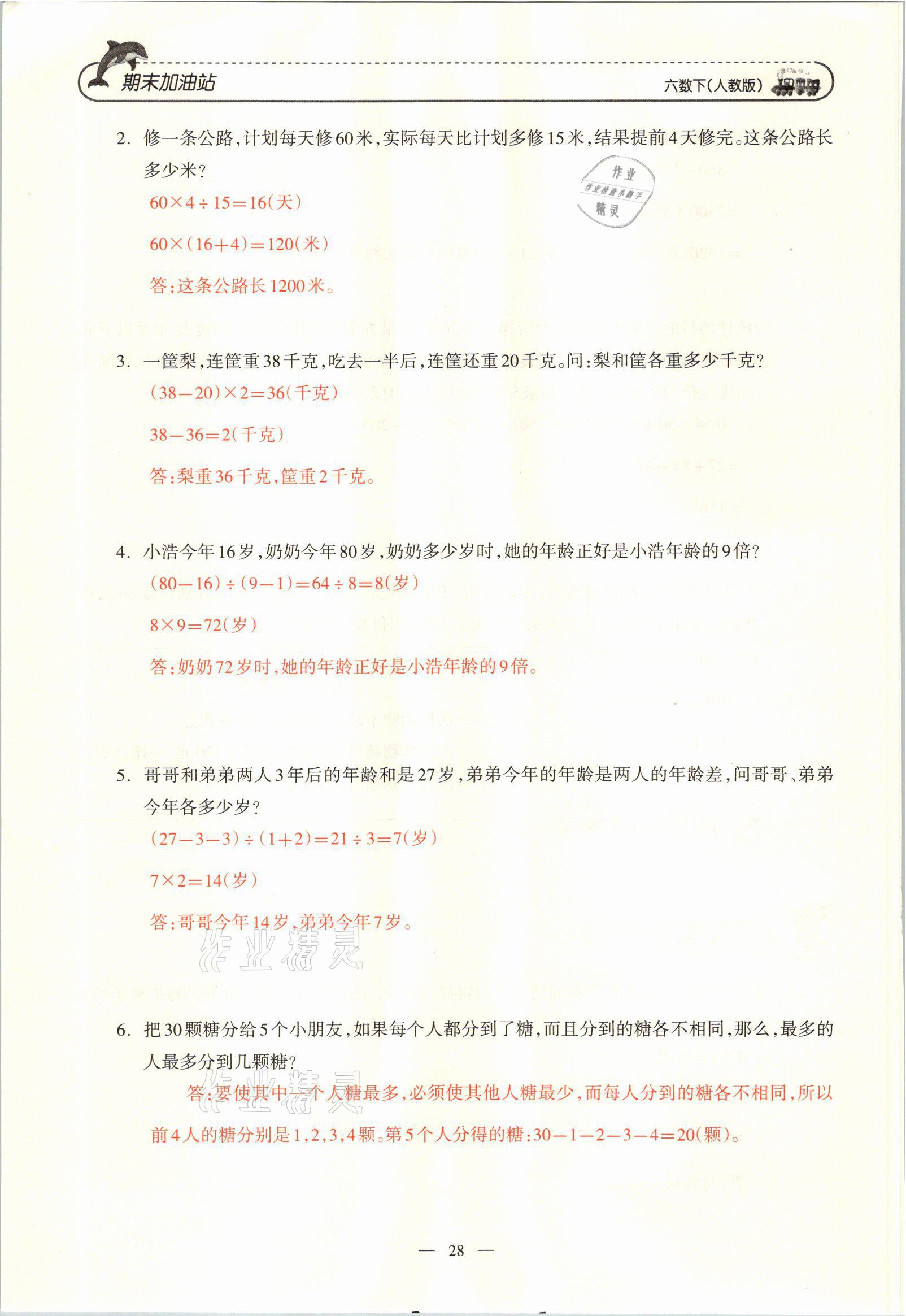 注:目前有些书本章节名称可能整理的还不是很完善,但都是按照顺序排列的,请同学们按照顺序仔细查找。练习册 2021年小学期末加油站六年级数学下册人教版 答案主要是用来给同学们做完题方便对答案用的,请勿直接抄袭。