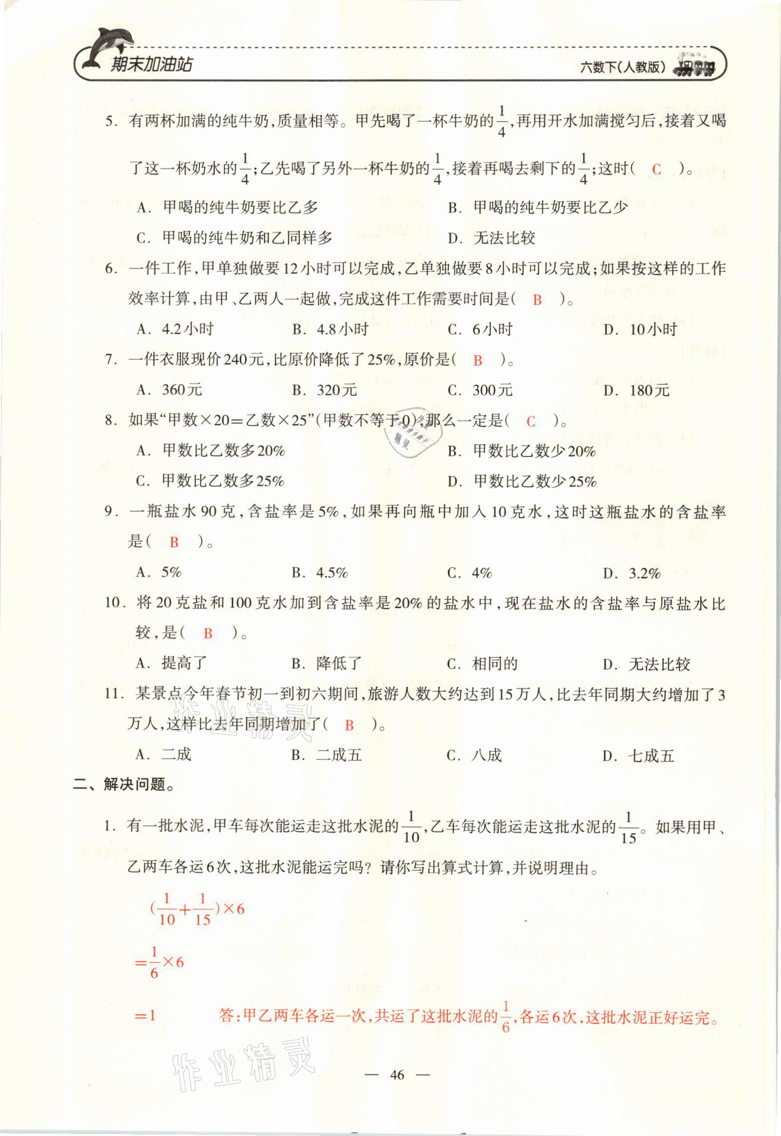 注:目前有些书本章节名称可能整理的还不是很完善,但都是按照顺序排列的,请同学们按照顺序仔细查找。练习册 2021年小学期末加油站六年级数学下册人教版 答案主要是用来给同学们做完题方便对答案用的,请勿直接抄袭。