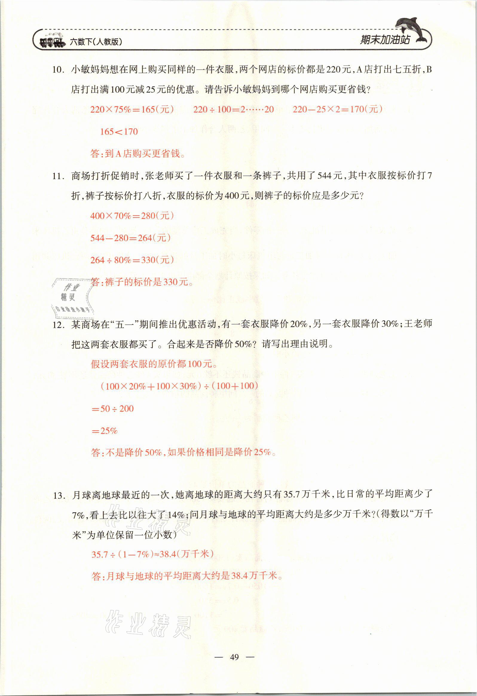 注:目前有些书本章节名称可能整理的还不是很完善,但都是按照顺序排列的,请同学们按照顺序仔细查找。练习册 2021年小学期末加油站六年级数学下册人教版 答案主要是用来给同学们做完题方便对答案用的,请勿直接抄袭。