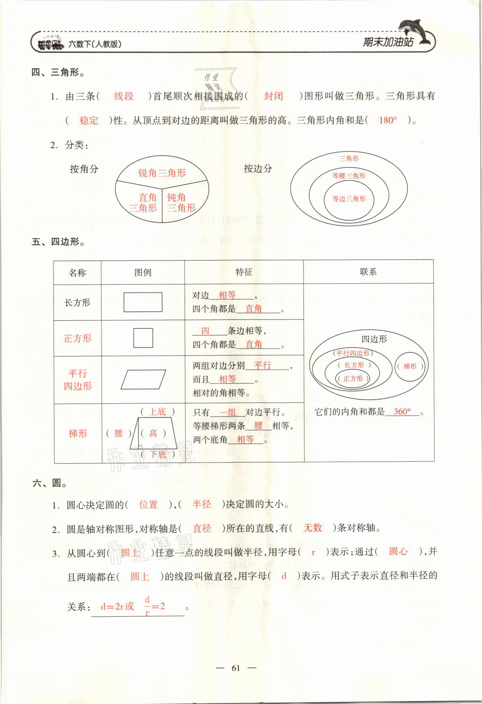2021年小学期末加油站六年级数学下册人教版