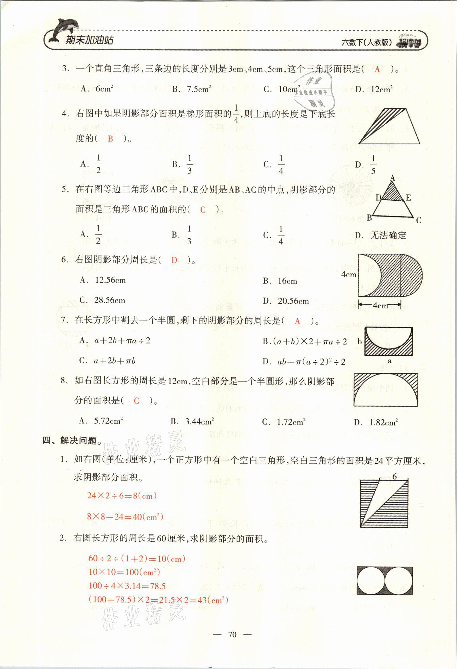 注:目前有些书本章节名称可能整理的还不是很完善,但都是按照顺序排列的,请同学们按照顺序仔细查找。练习册 2021年小学期末加油站六年级数学下册人教版 答案主要是用来给同学们做完题方便对答案用的,请勿直接抄袭。