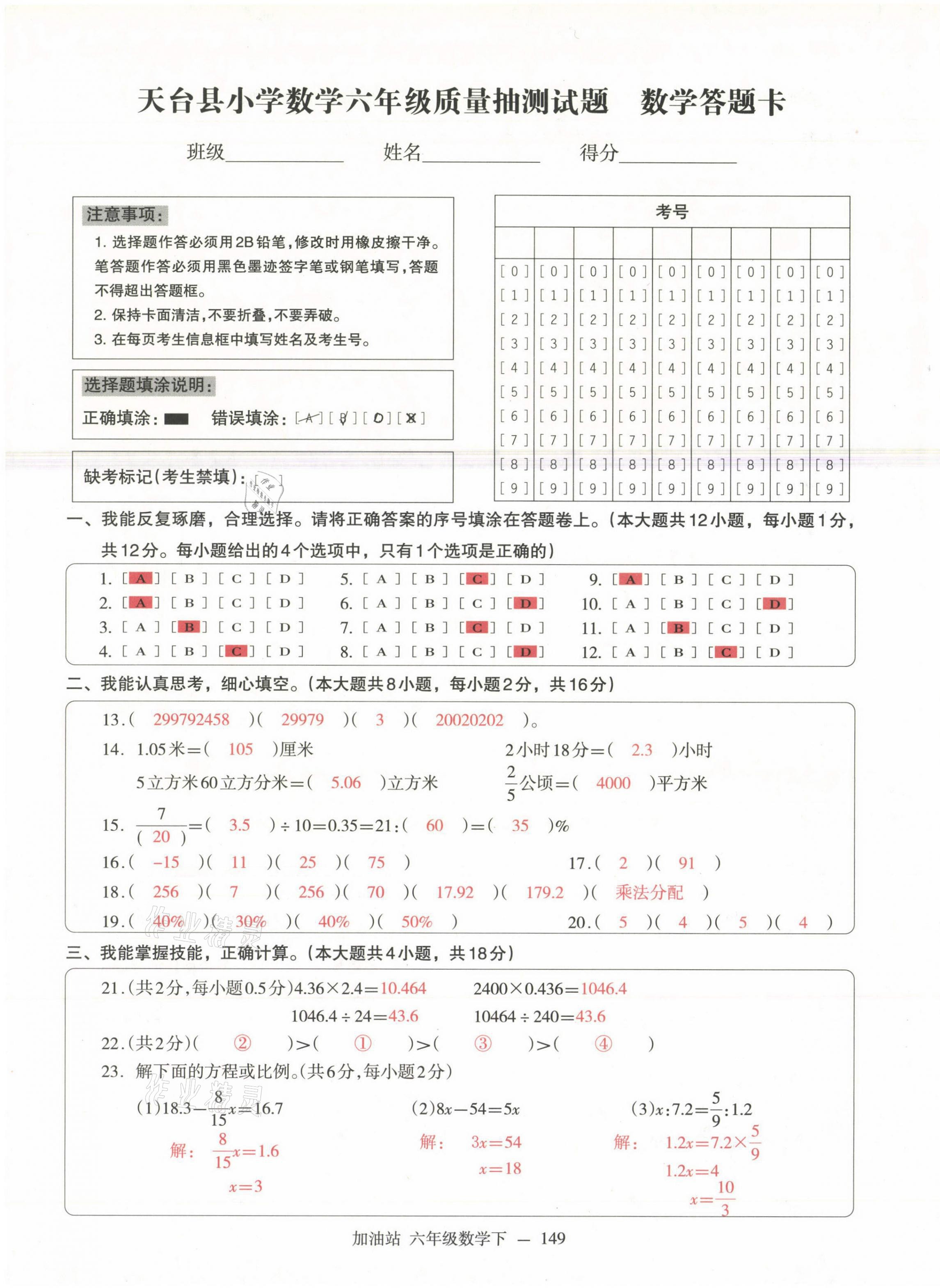 注:目前有些书本章节名称可能整理的还不是很完善,但都是按照顺序排列的,请同学们按照顺序仔细查找。练习册 2021年小学期末加油站六年级数学下册人教版 答案主要是用来给同学们做完题方便对答案用的,请勿直接抄袭。
