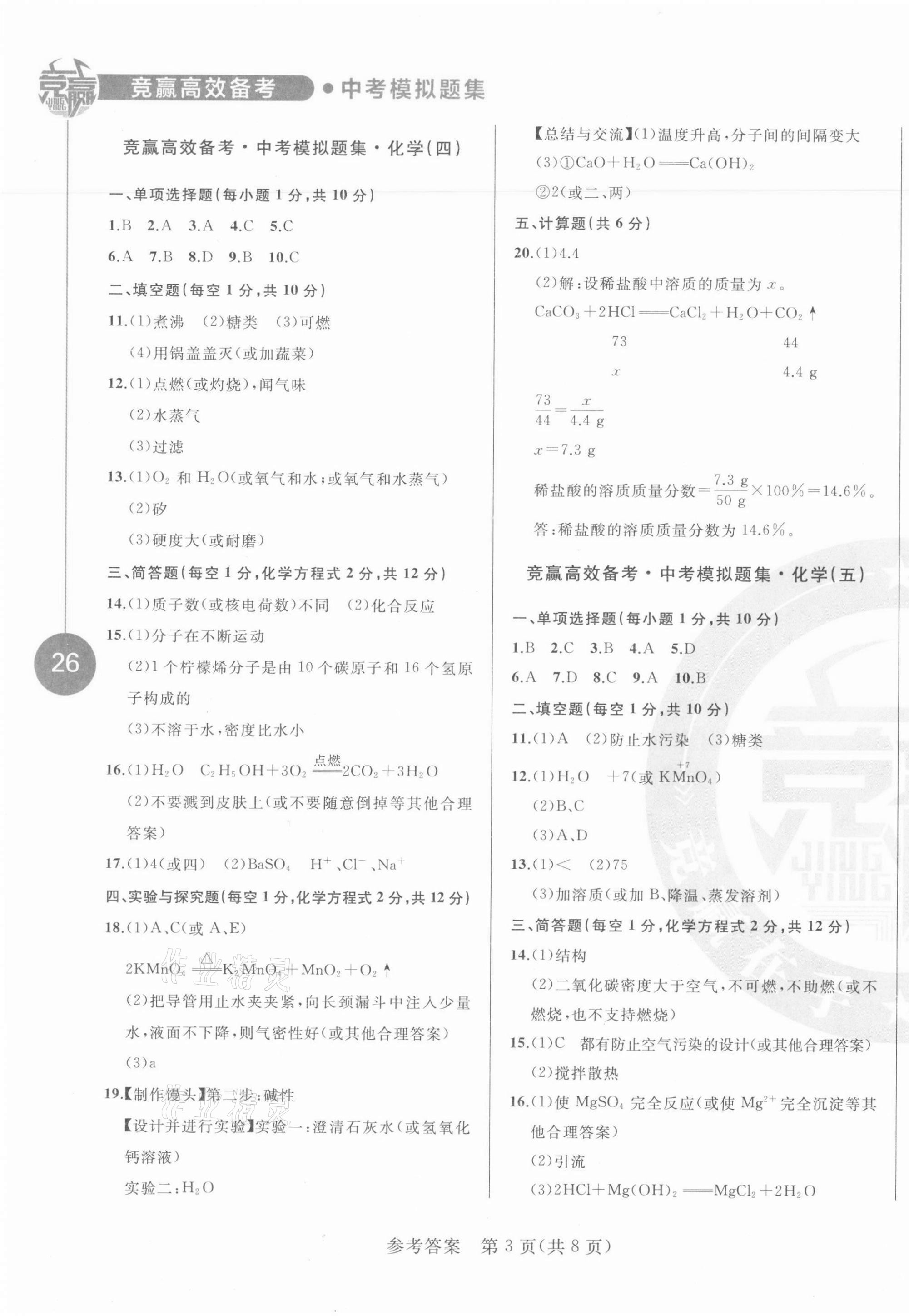 注:目前有些书本章节名称可能整理的还不是很完善,但都是按照顺序排列的,请同学们按照顺序仔细查找。练习册 2021年竞赢高效备考中考模拟题集化学吉林专版 答案主要是用来给同学们做完题方便对答案用的,请勿直接抄袭。