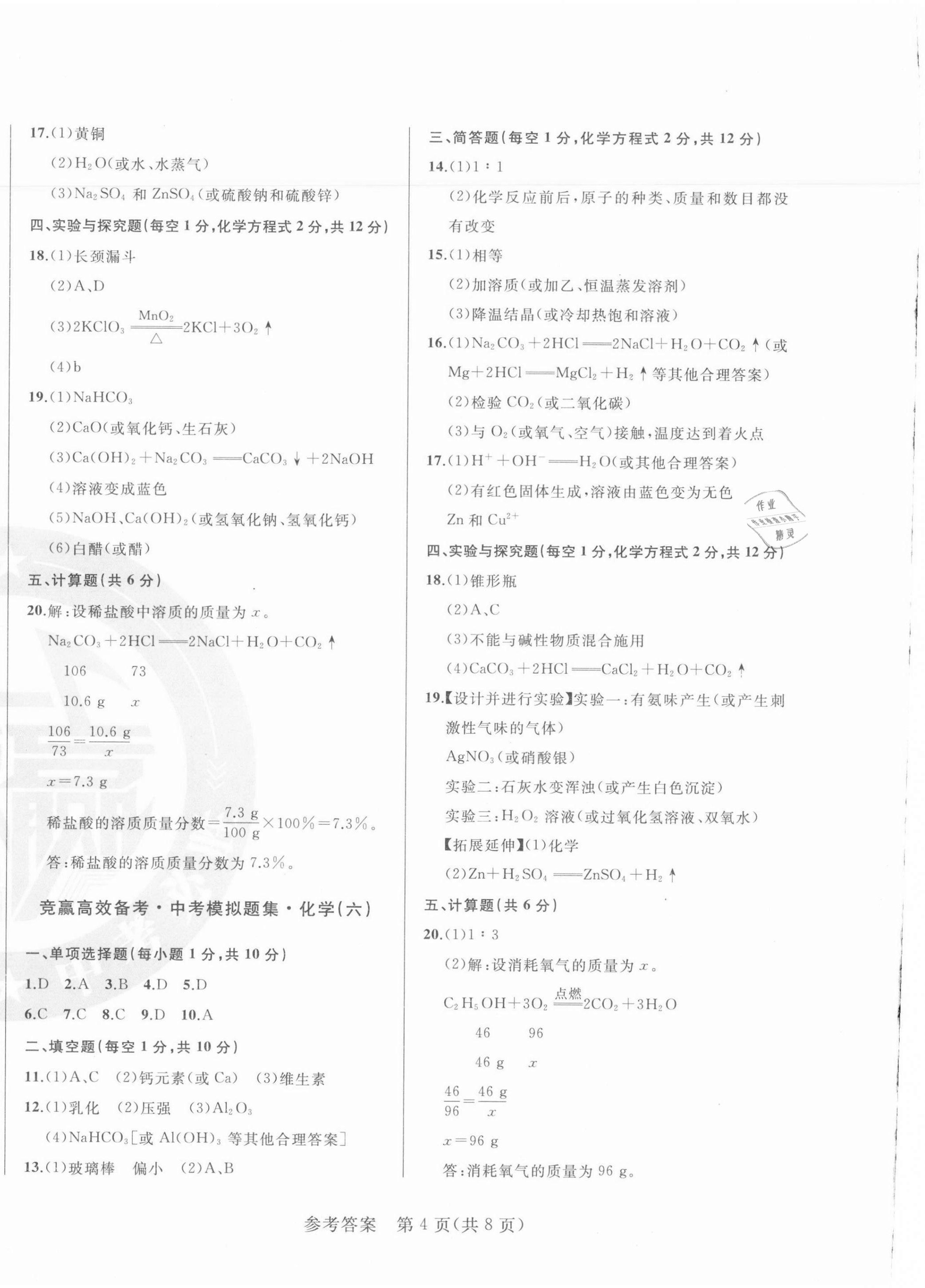 2021年竞赢高效备考中考模拟题集化学吉林专版