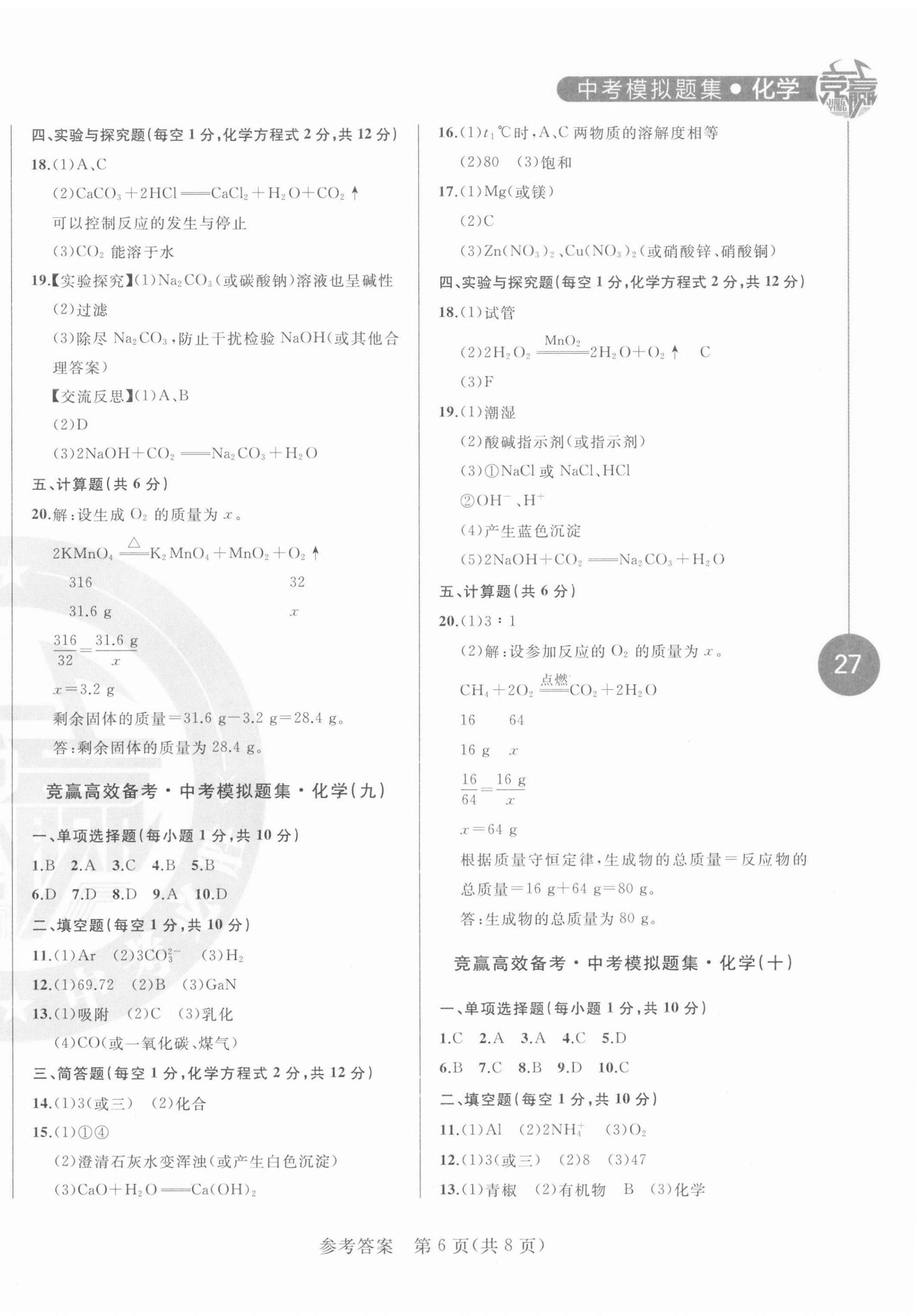 2021年竞赢高效备考中考模拟题集化学吉林专版