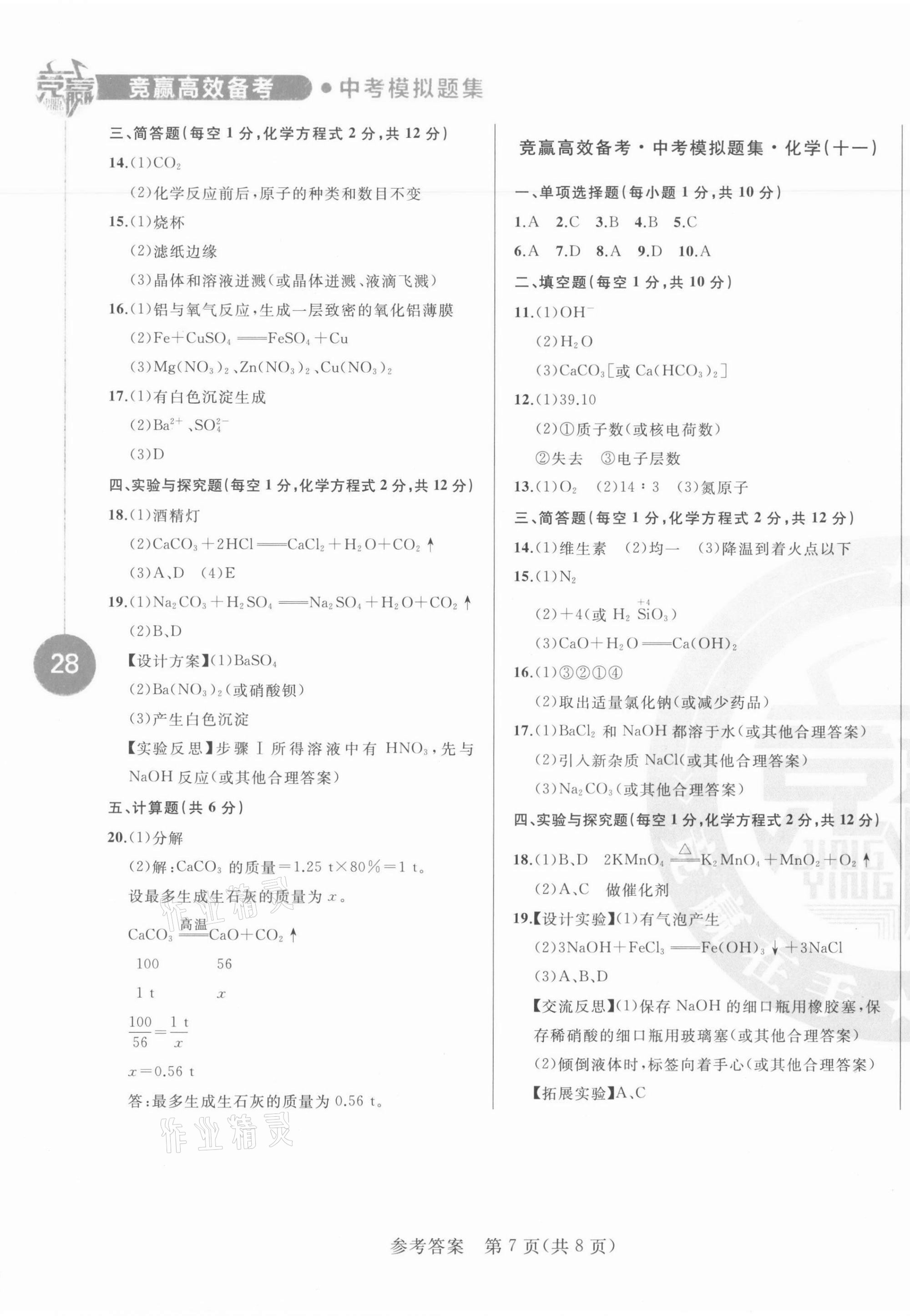 2021年竞赢高效备考中考模拟题集化学吉林专版