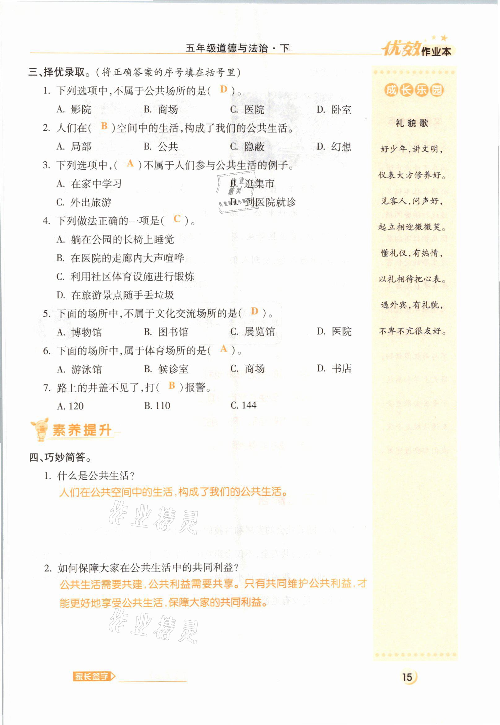 注:目前有些书本章节名称可能整理的还不是很完善,但都是按照顺序排列的,请同学们按照顺序仔细查找。练习册 2021年优效作业本五年级道德与法治下册部编版 答案主要是用来给同学们做完题方便对答案用的,请勿直接抄袭。
