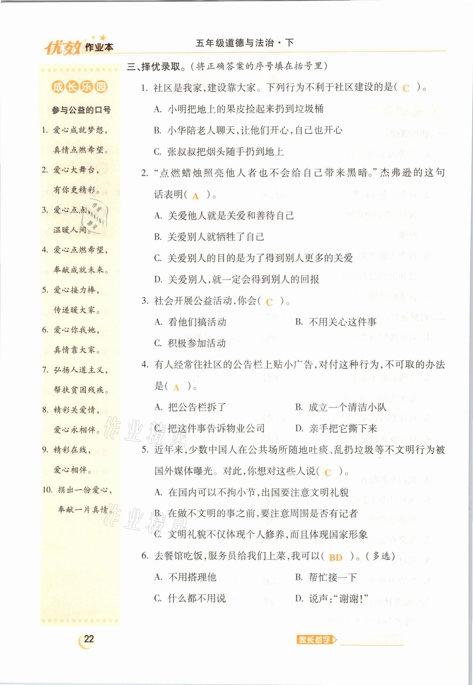 注:目前有些书本章节名称可能整理的还不是很完善,但都是按照顺序排列的,请同学们按照顺序仔细查找。练习册 2021年优效作业本五年级道德与法治下册部编版 答案主要是用来给同学们做完题方便对答案用的,请勿直接抄袭。