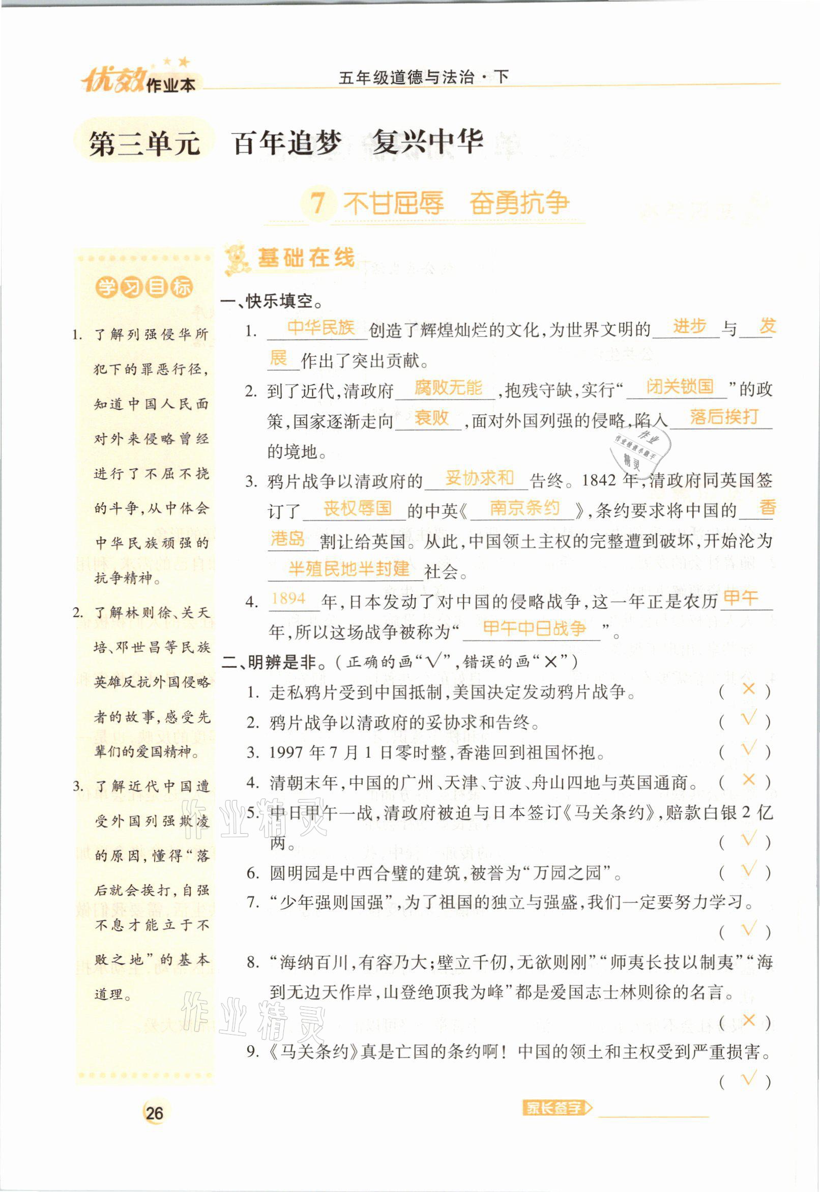 注:目前有些书本章节名称可能整理的还不是很完善,但都是按照顺序排列的,请同学们按照顺序仔细查找。练习册 2021年优效作业本五年级道德与法治下册部编版 答案主要是用来给同学们做完题方便对答案用的,请勿直接抄袭。