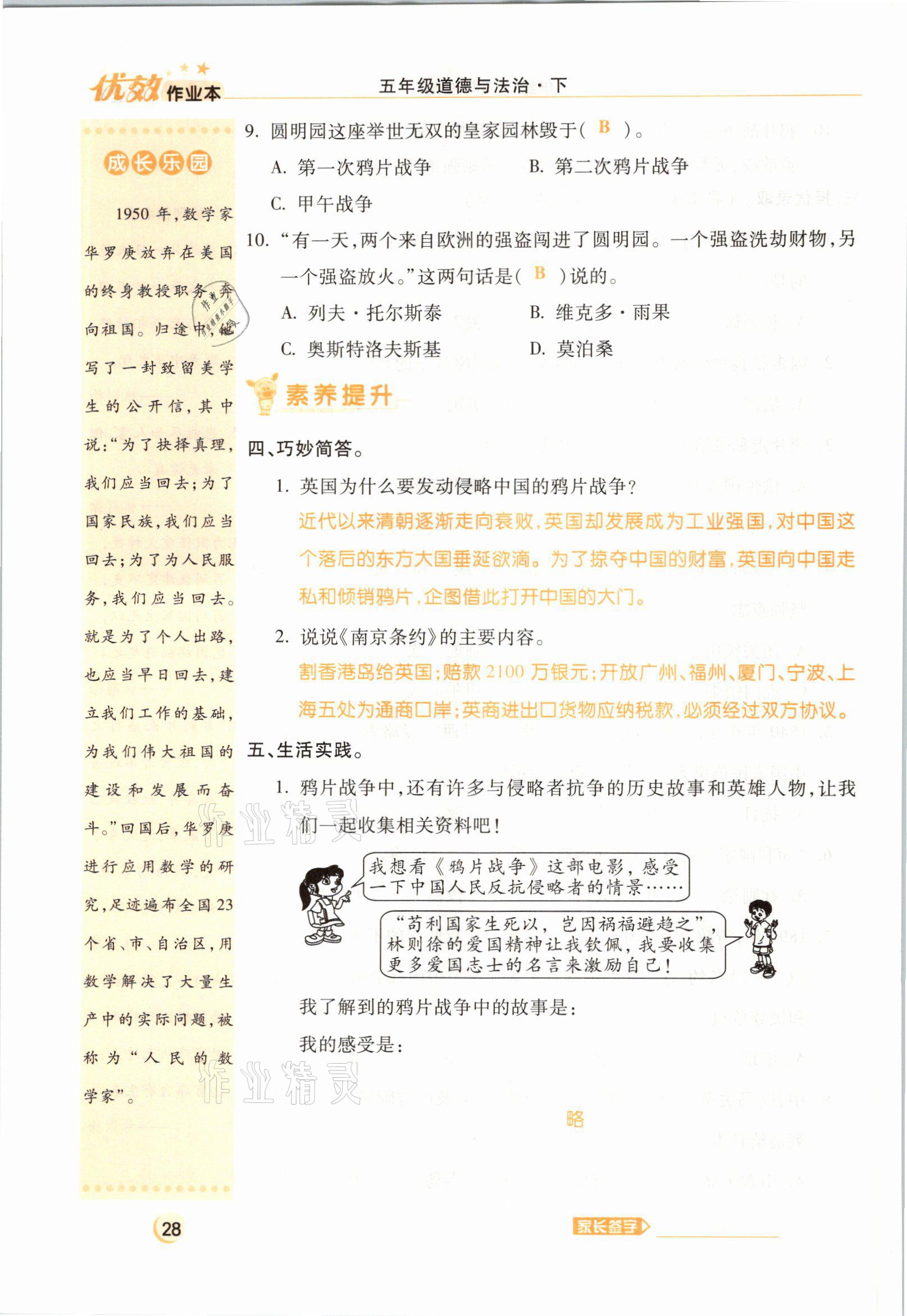注:目前有些书本章节名称可能整理的还不是很完善,但都是按照顺序排列的,请同学们按照顺序仔细查找。练习册 2021年优效作业本五年级道德与法治下册部编版 答案主要是用来给同学们做完题方便对答案用的,请勿直接抄袭。