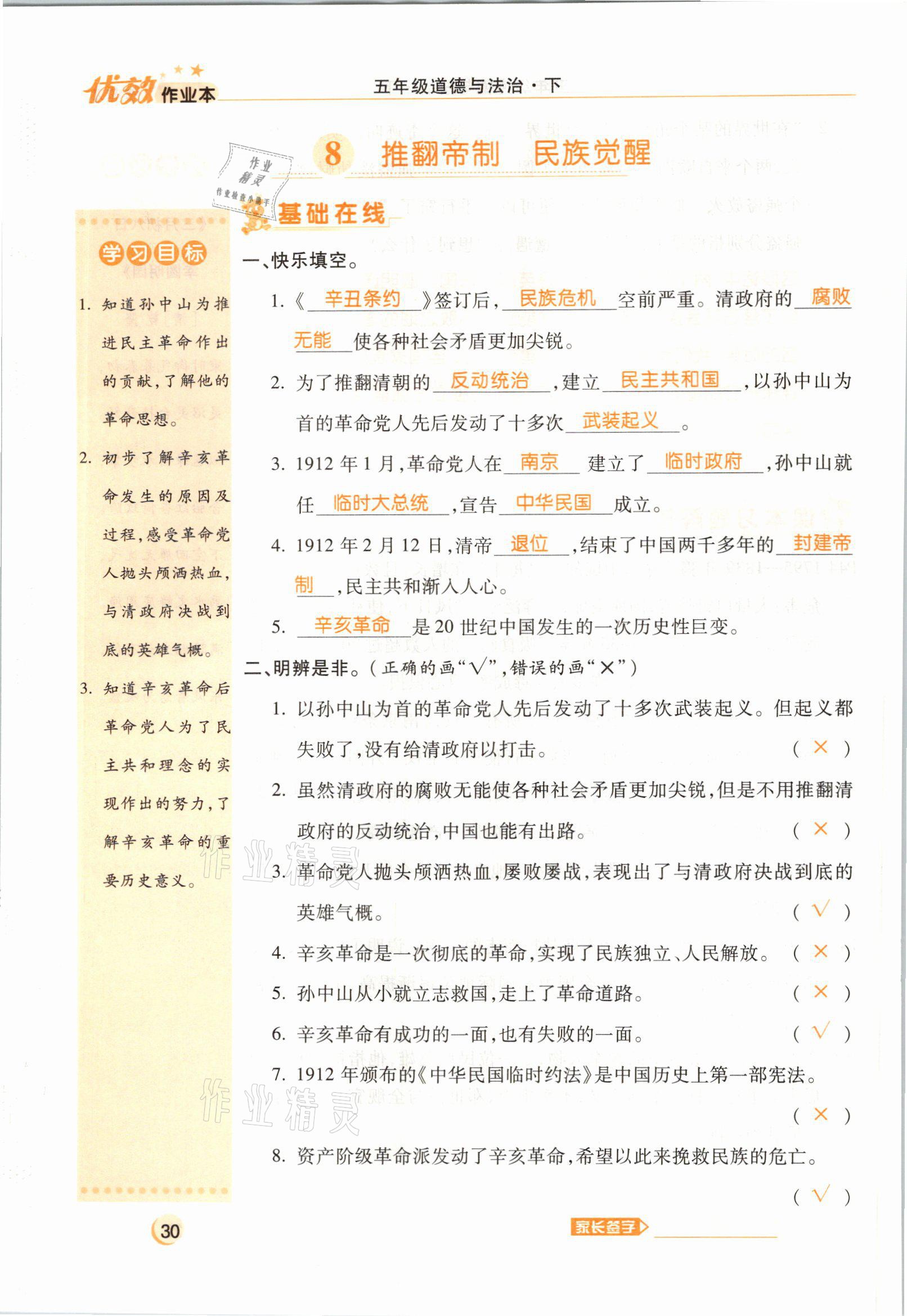 注:目前有些书本章节名称可能整理的还不是很完善,但都是按照顺序排列的,请同学们按照顺序仔细查找。练习册 2021年优效作业本五年级道德与法治下册部编版 答案主要是用来给同学们做完题方便对答案用的,请勿直接抄袭。