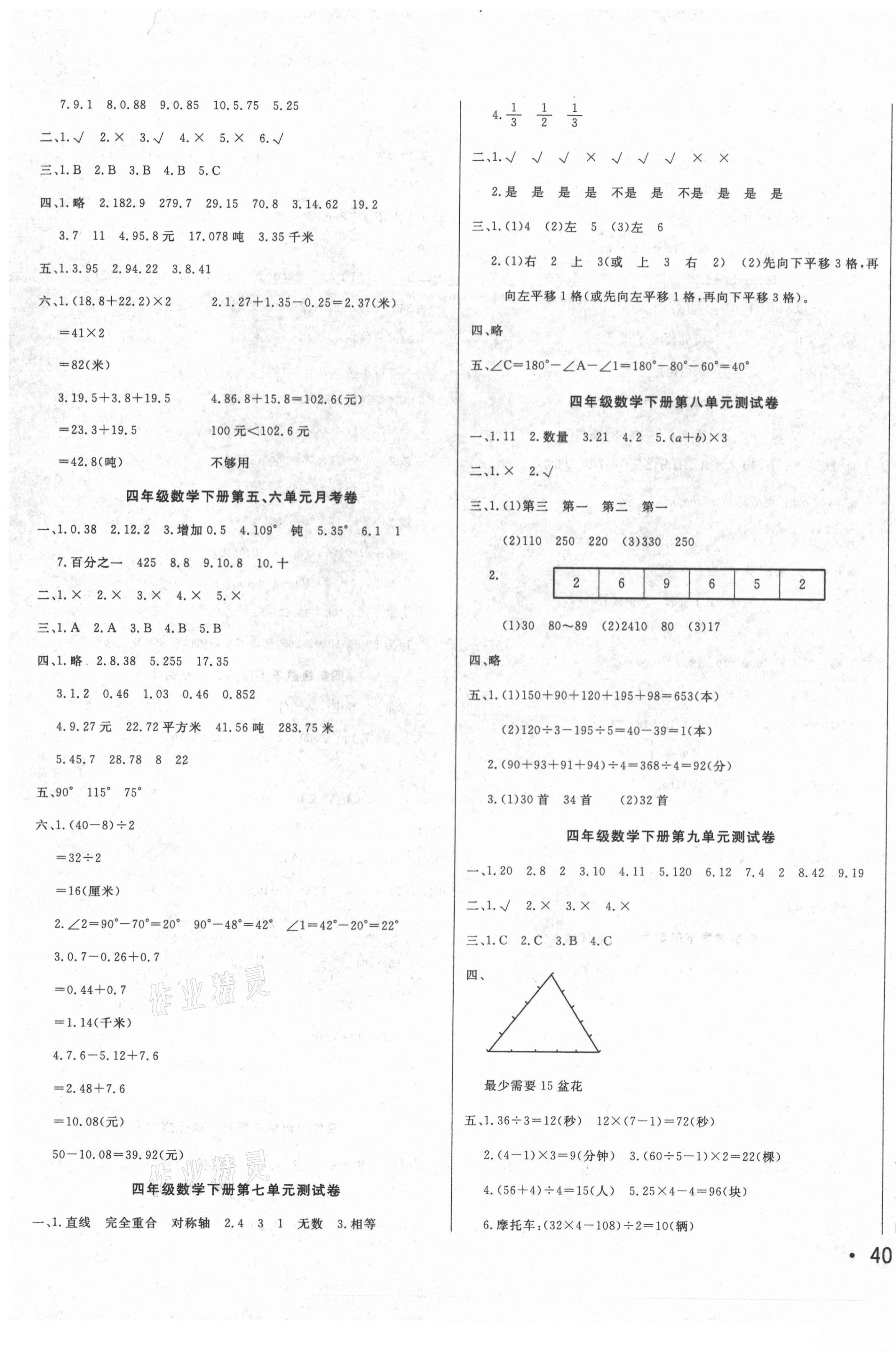2021年黄冈小博士冲刺100分四年级数学下册人教版