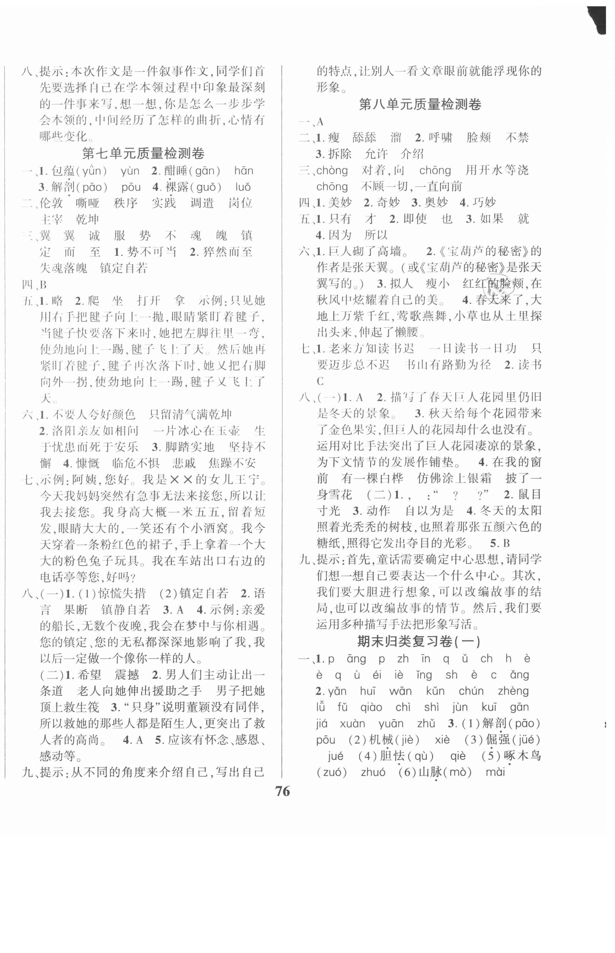《2021年一线名师金典提分卷四年级语文下册人教版》