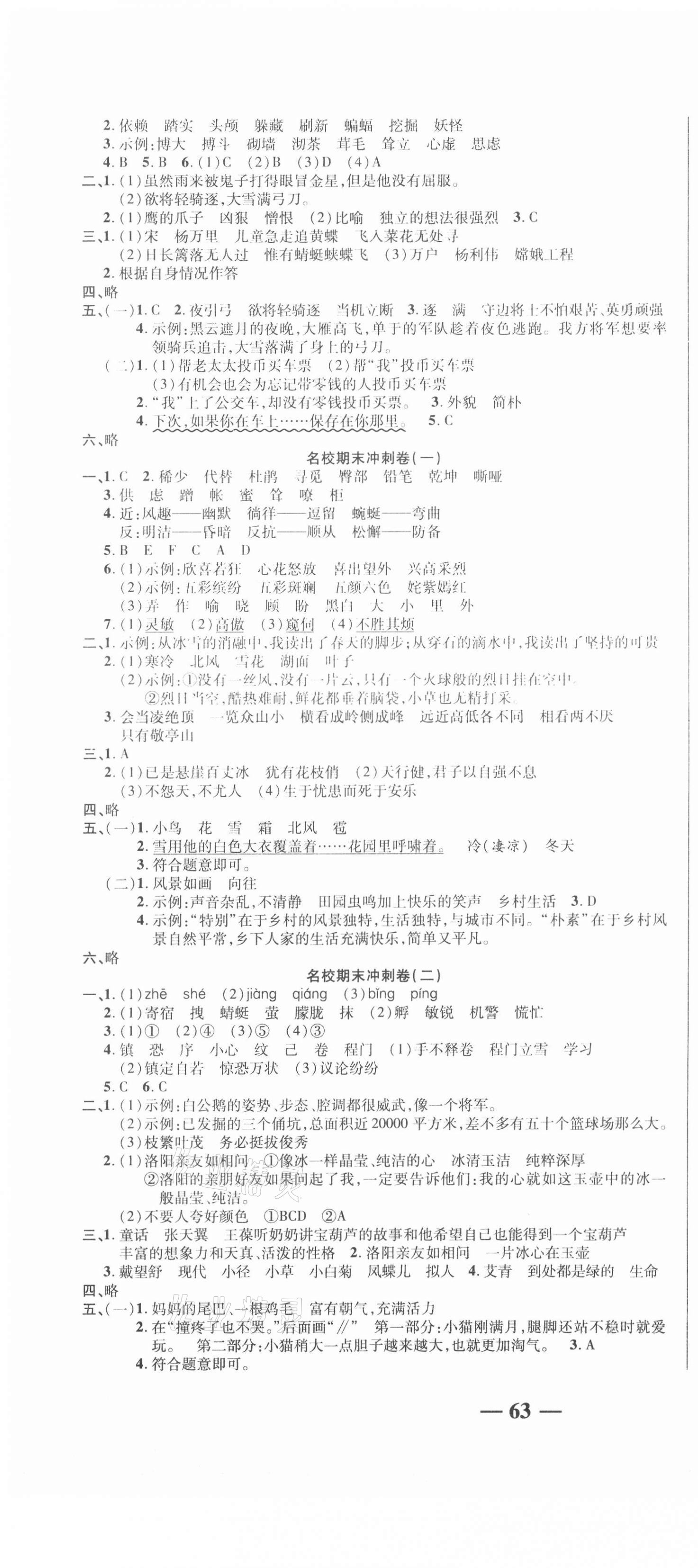 注:目前有些书本章节名称可能整理的还不是很完善,但都是按照顺序排列的,请同学们按照顺序仔细查找。练习册 2021年名师期末冲刺100分四年级语文下册人教版 答案主要是用来给同学们做完题方便对答案用的,请勿直接抄袭。
