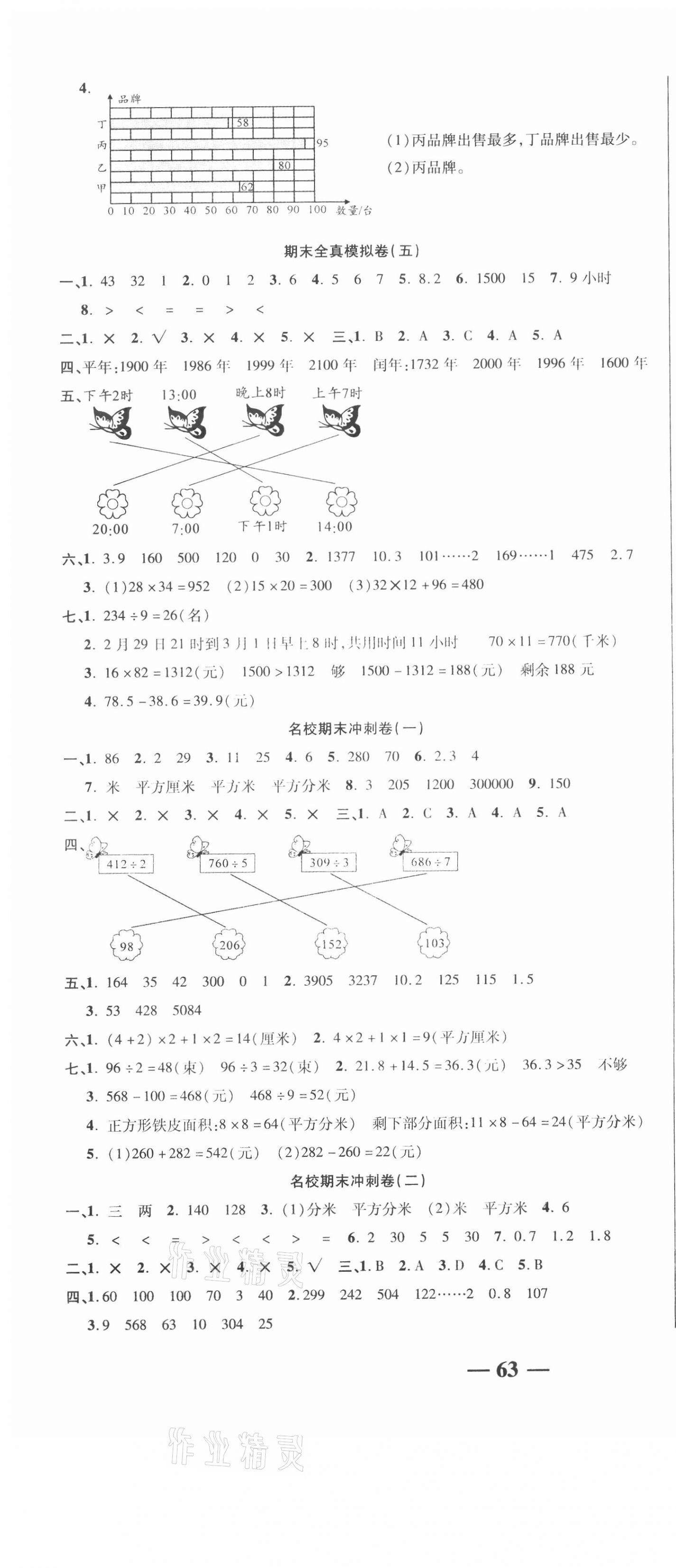 2021年名师期末冲刺100分三年级数学下册人教版
